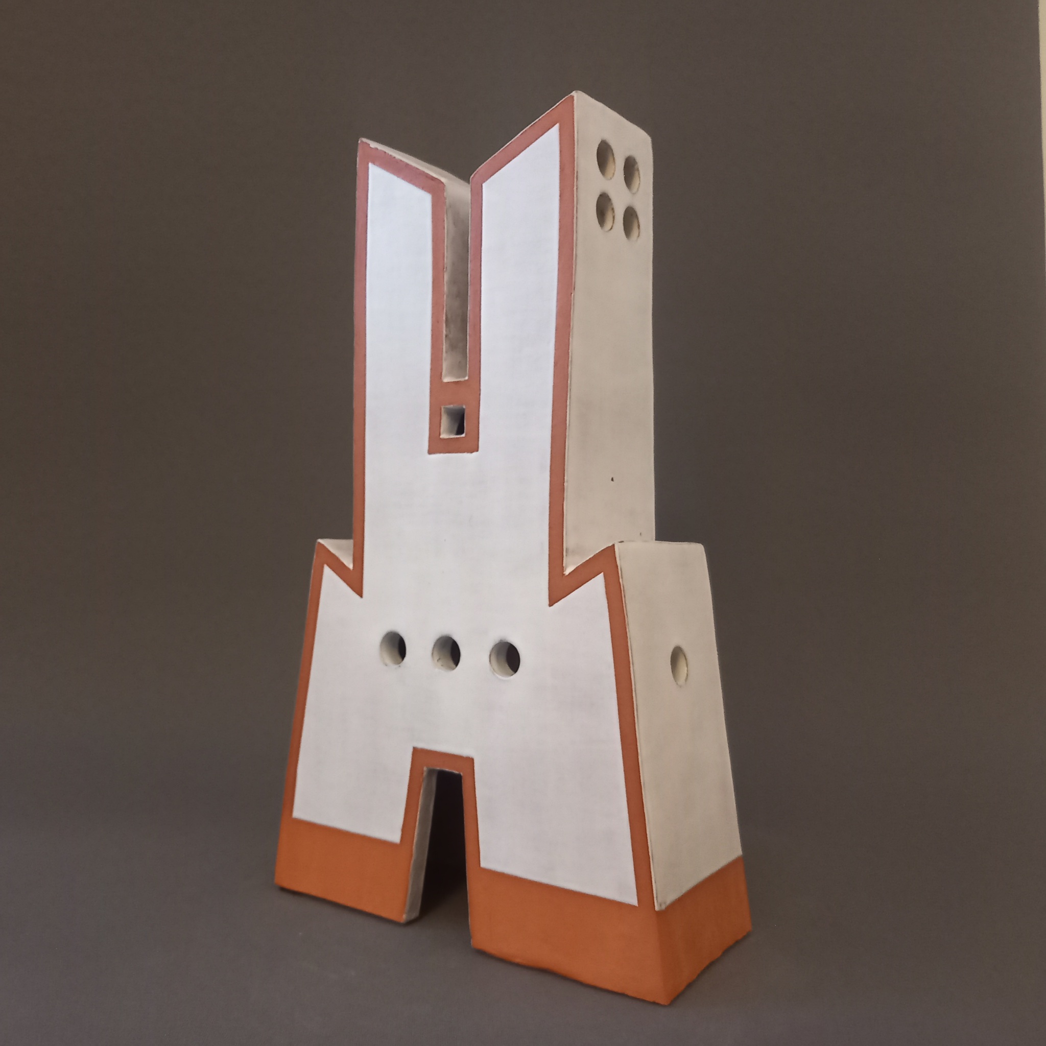 Ventilatiegebouw. Rode klei en Witte matglazuur.