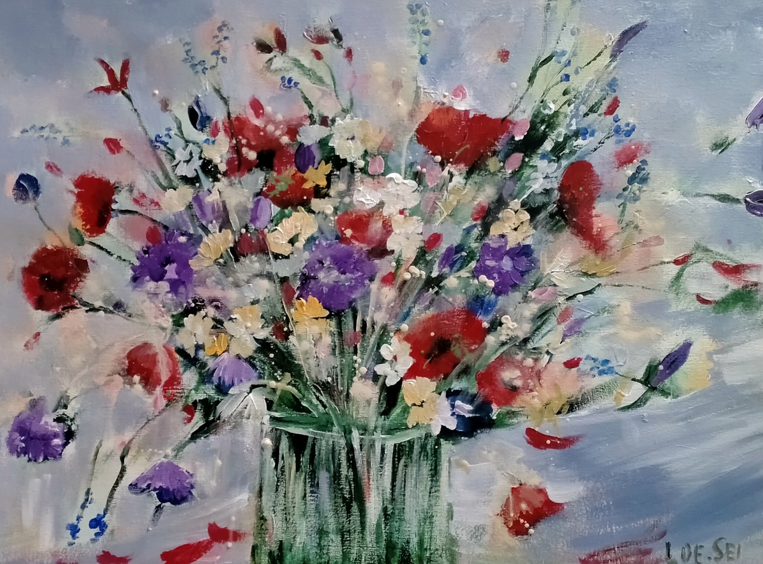 Loe-Sei schildert op grote doeken en heeft een kleurrijke, losse stijl. Het werk is impressionistisch te noemen. Zij is geboren in Eindhoven in 1947 . Grote doeken met vooral bloemen