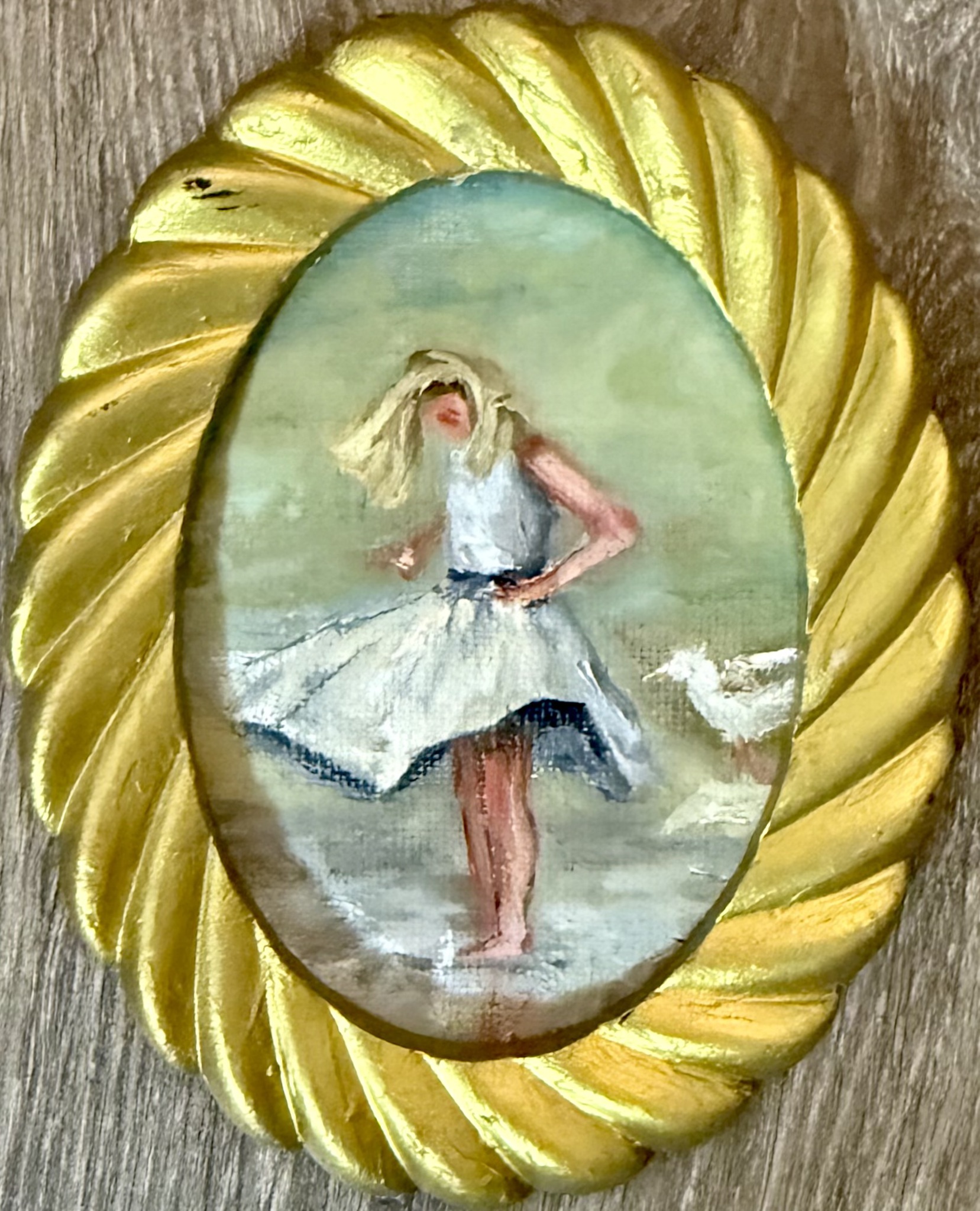 Wit Meisje Zee Strand Figuratief Romantisch Realisme Impressionisme Jurkje Zeemeeuw