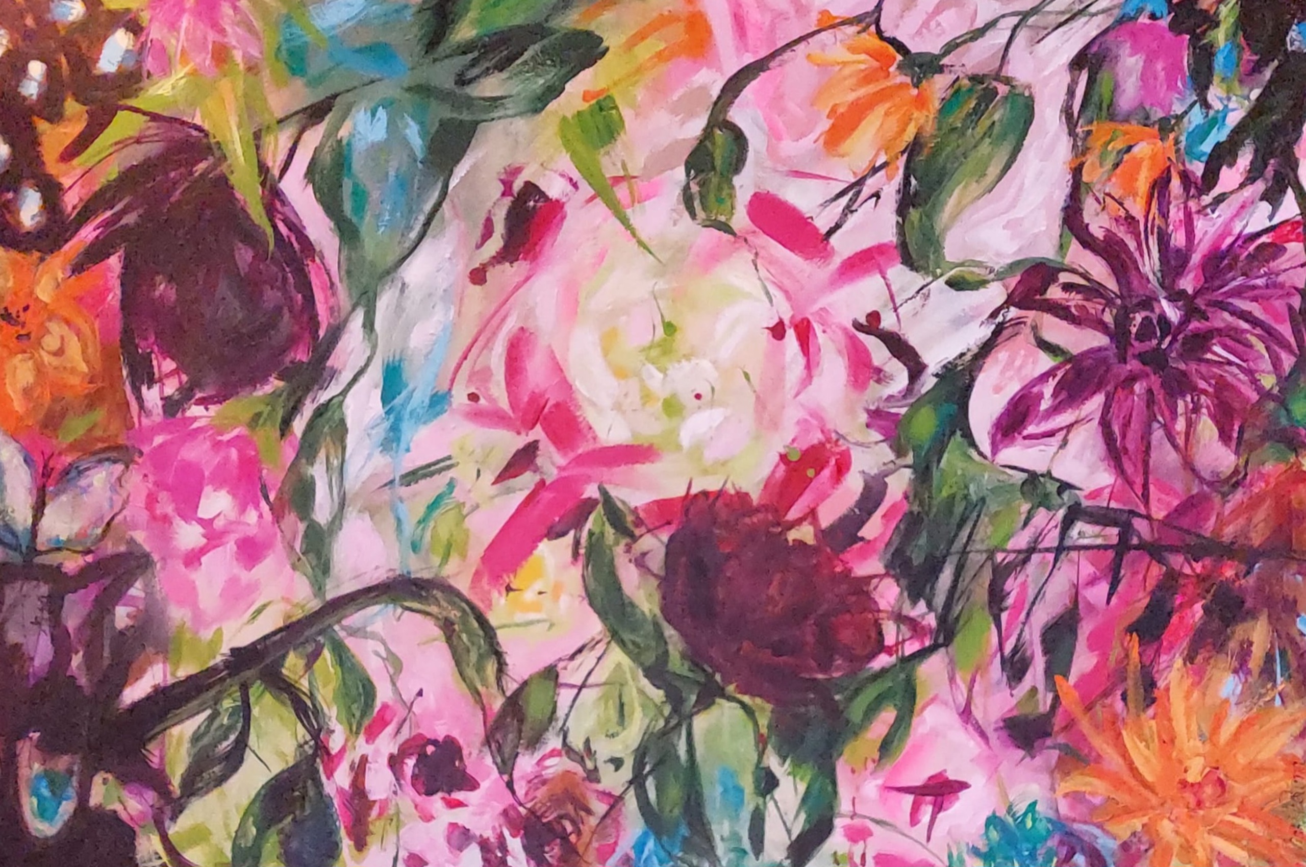 Acryl panting bloemenpracht in Cancale, deze heb ik geschilderd na vele bezoekjes in deze mooie franse badplaats, waar alles zo mooi in bloei staat. Zoveel mooie kleuren stralen je toe en rond dwarrelende vlinders die neerstrijken op een bloem het geeft je zoveel inspiratie om dit op het doek vast te leggen.