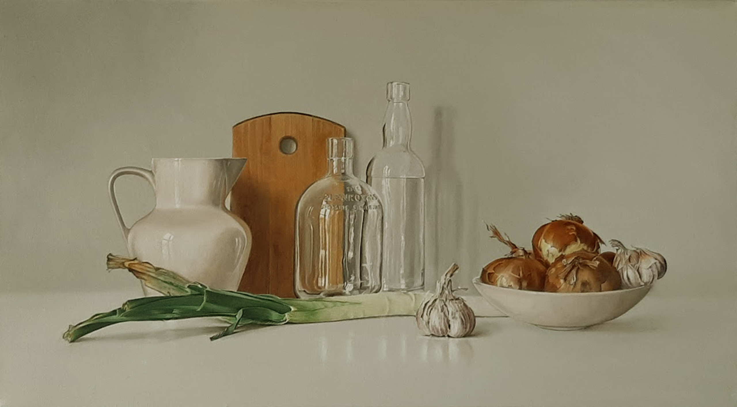 Opdracht een werk voor in de keuken. Gevraagd eenvoud in compositie en kleur.