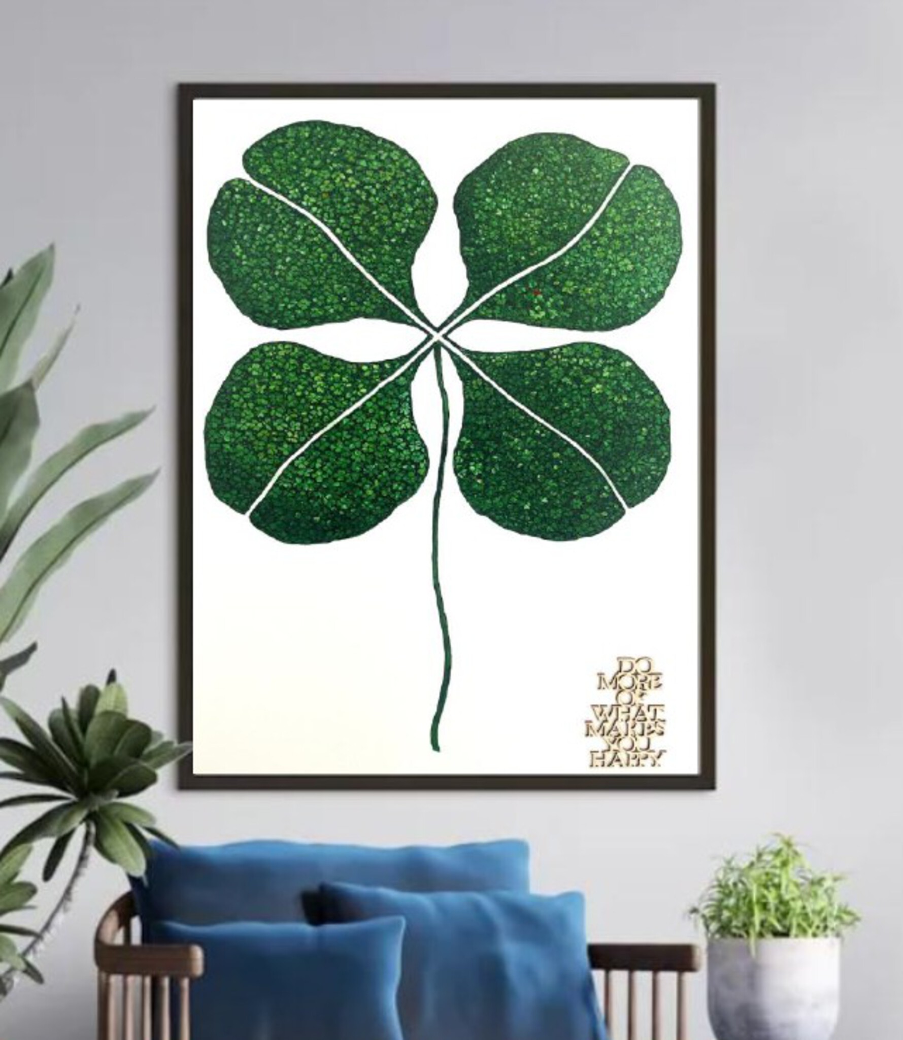 In a quiet glade beyond the edge of the known world, where the wind hums lullabies and the sun always shines just right, there stands a single clover—taller, greener, and more perfect than any other. But it is not just any clover. It is The Fourfold Leaf, and it is said to be the heart of an ancient magic that once blessed the earth with joy, unity, and the promise of wonder. But there’s more than meets the eye. Look closely: within each of these grand leaves are thousands of tiny clovers, a whole universe contained within. Every little clover represents a story—a moment of courage, of laughter, of whispered dreams under the stars. It is said that if you find the single red speck within (a tiny heart-leaf hidden among the green), your deepest wish will begin to grow.