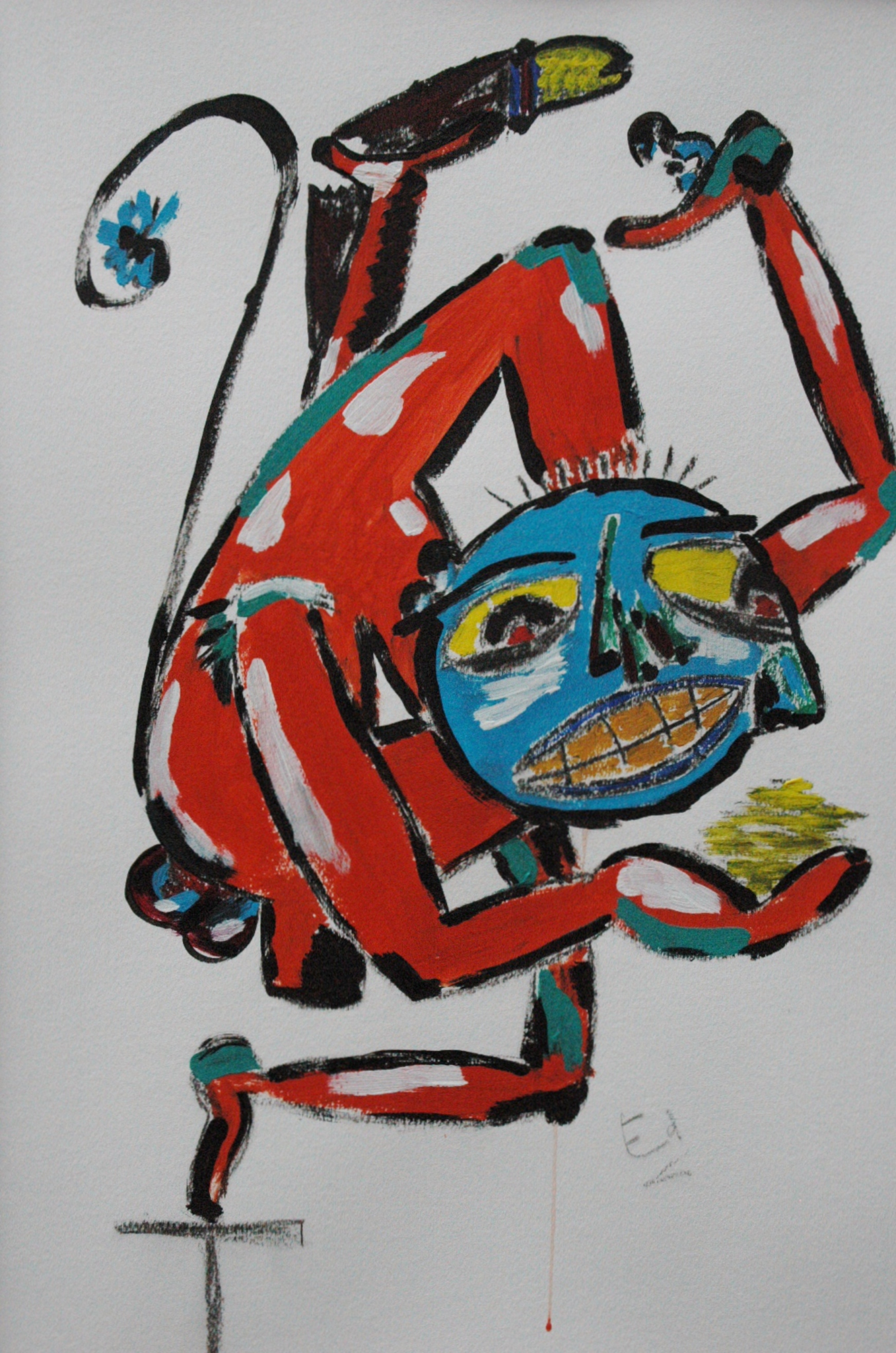 De huidige Edu schildert met waterbased olieverf op canvas, kenmerkend zijn de felle kleuren en de verstilde beweging.