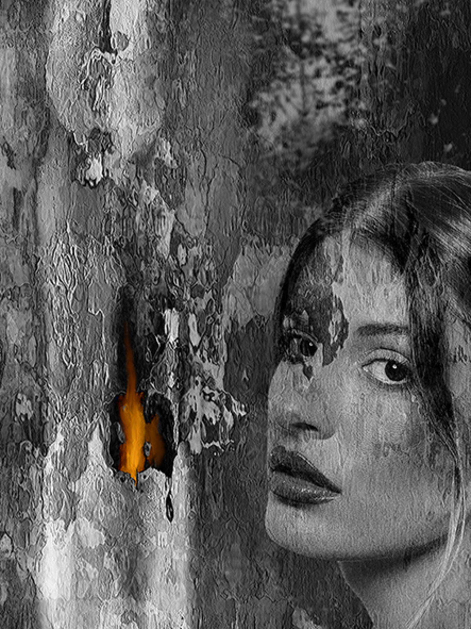Portret Digitaal Grafiek Oranjerood Zwart-wit