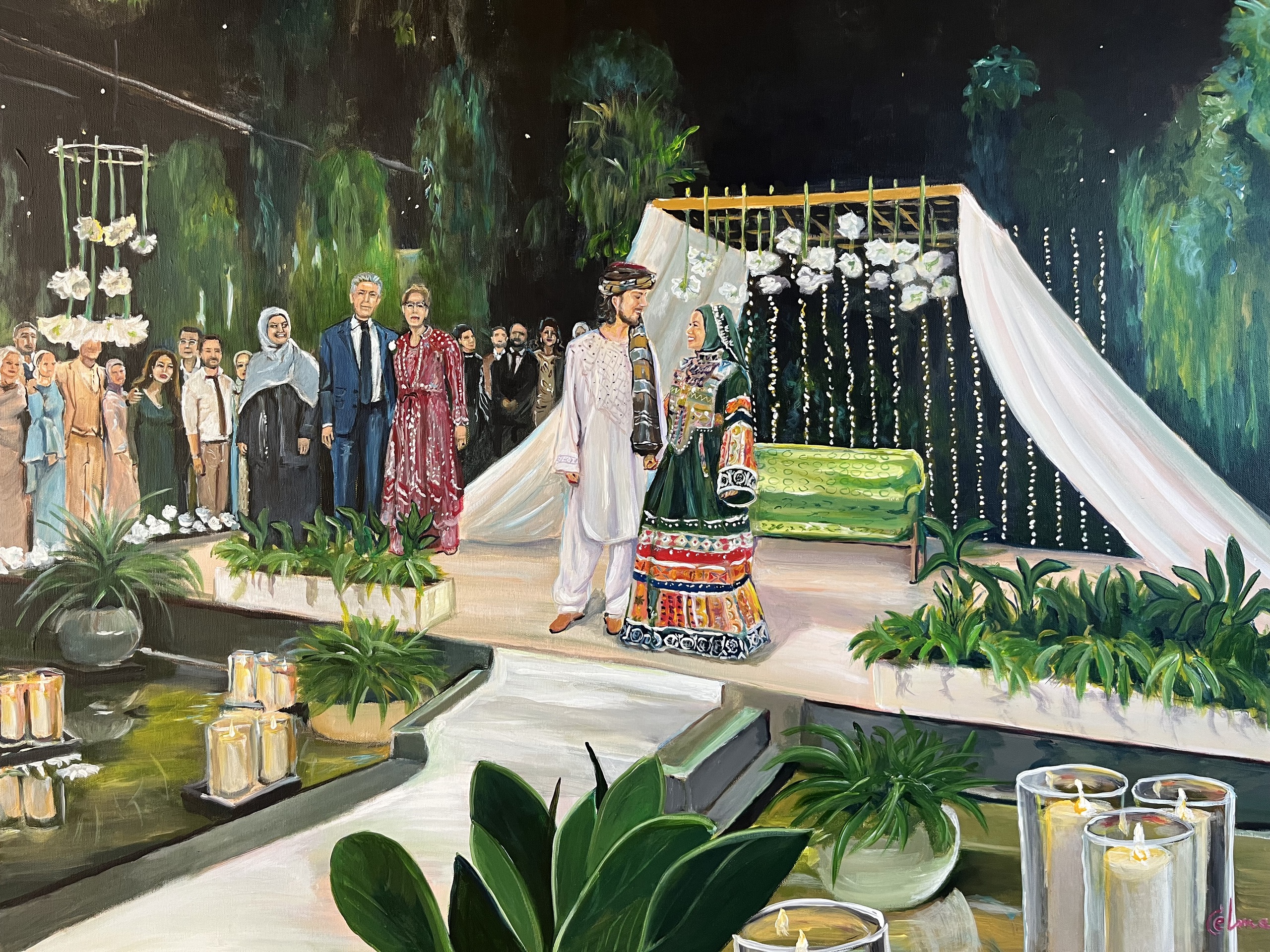 Livepaint Bruiloft Trouwen Bruidspaar Koerdisch Afgaans Feest Schilderij Cadeau