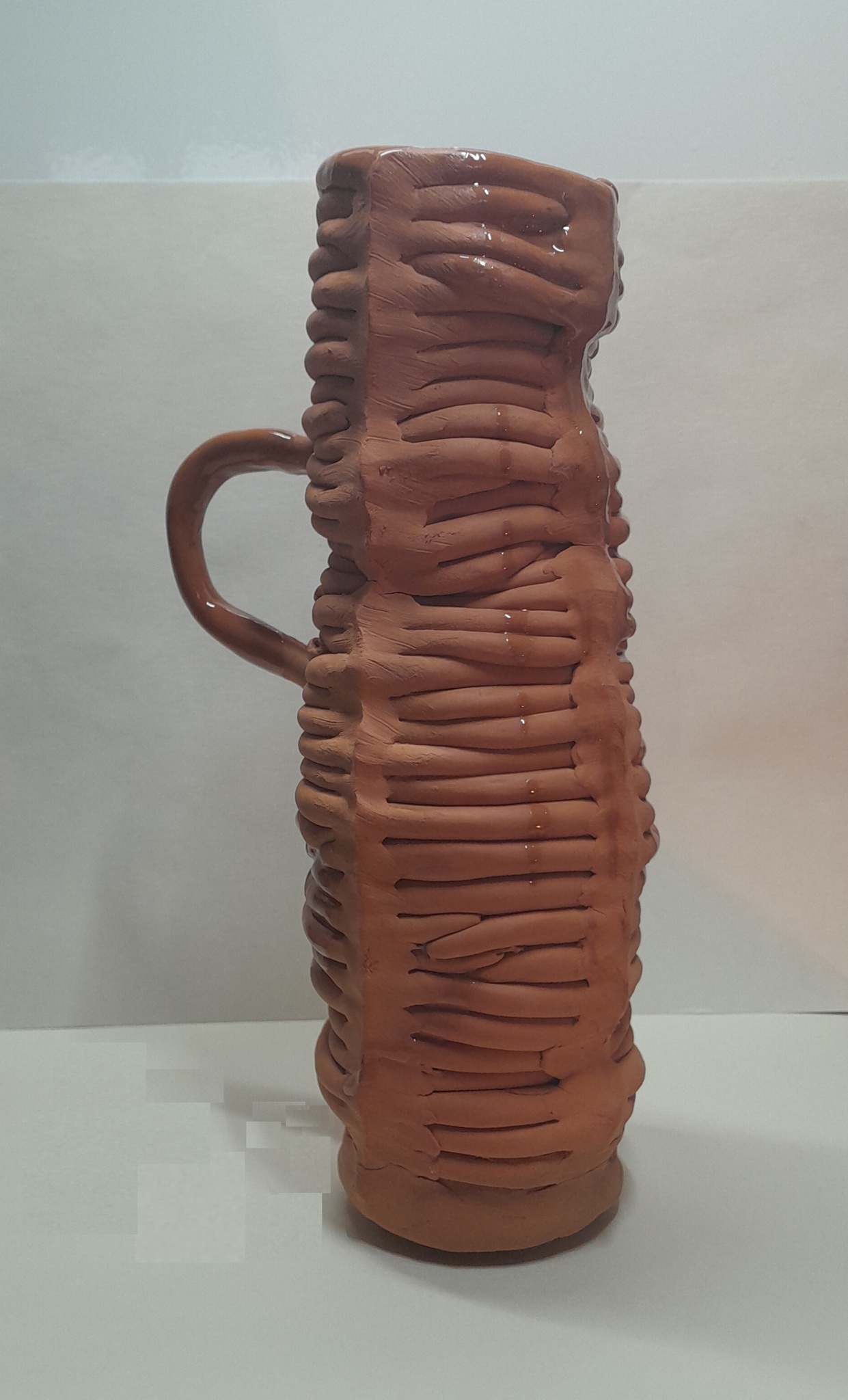 100-Vazen-project – Aardewerk, geglazuurd - proces onderzoek - Alle vazen zijn handgevormd, opgebouwd uit ringen. De vazen zijn cilindervormig en minimaal 30 cm hoog. De vazen lijken elk een eigen karakter te hebben. Hoe verhouden ze zich tot elkaar en tot de ruimte waar ze staan?
