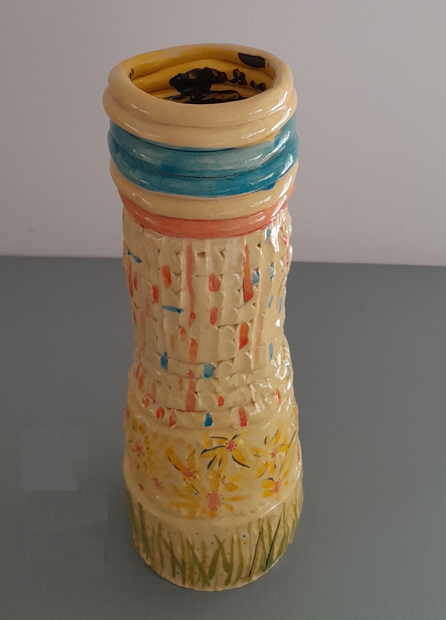 100-Vazen-project – Aardewerk, geglazuurd - proces onderzoek - Alle vazen zijn handgevormd, opgebouwd uit ringen. De vazen zijn cilindervormig en minimaal 30 cm hoog. De vazen lijken elk een eigen karakter te hebben. Hoe verhouden ze zich tot elkaar en tot de ruimte waar ze staan?