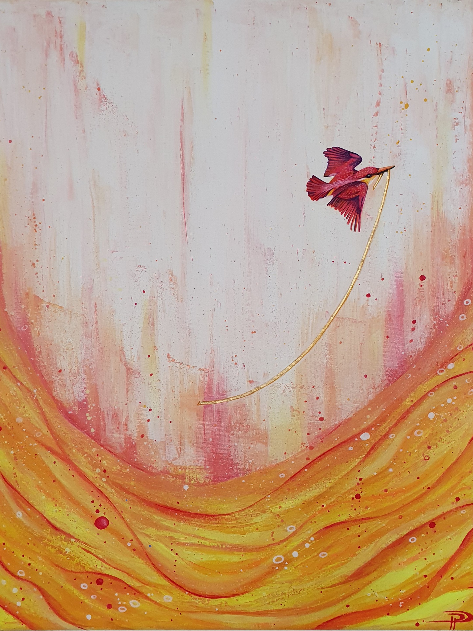 de tropische ijsvogel vliegt met een gouden koord door het gele landschap, waar doet dit gele landschap jou aan denken? Hosea 11-4 NBG met mensenbanden trok ik hen, met koorden der liefde