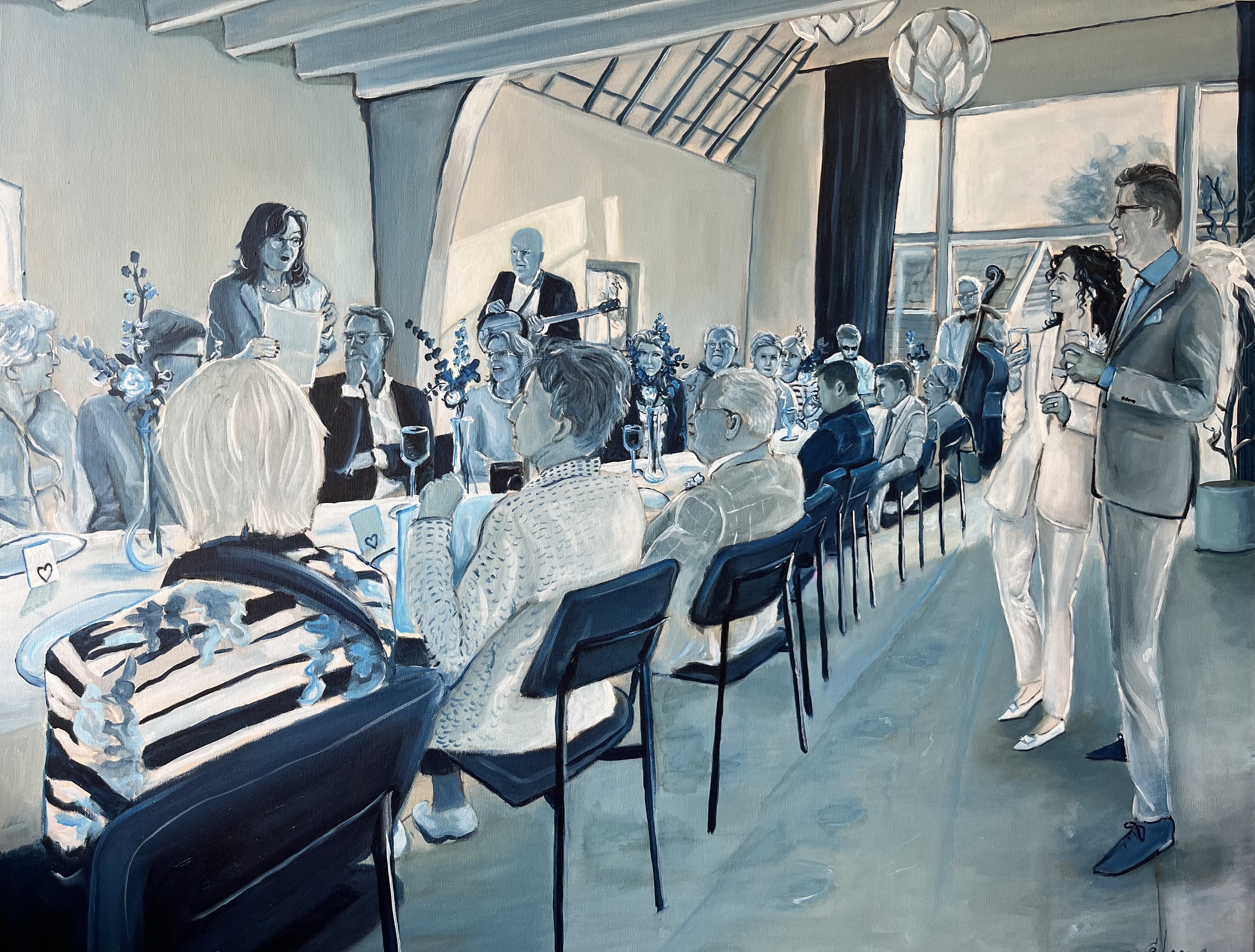 Trouwen Diner Bruidspaar Toespraak Muzikanten Delftsblauw Schilderij