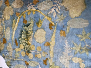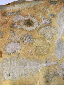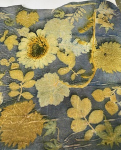 Na jaren vilten ontdekte ik ecoprinten, dwz uit bladeren en bloemen de afdruk weergeven op textiel of papier. Vooral werken met geitenleer heeft mijn voorkeur. Ik maak er vaak tasjes van.