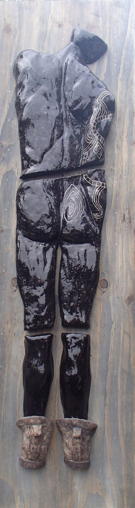 Ik maak torso's, ik versier de huid met tattoo's, kijk onder de huid naar spieren, en wat er over die huid gedragen kan worden. Iedere verandering, roept direkt een indruk op, over de persoon achter de torso. Diverse materialen, keramiek, metaal.