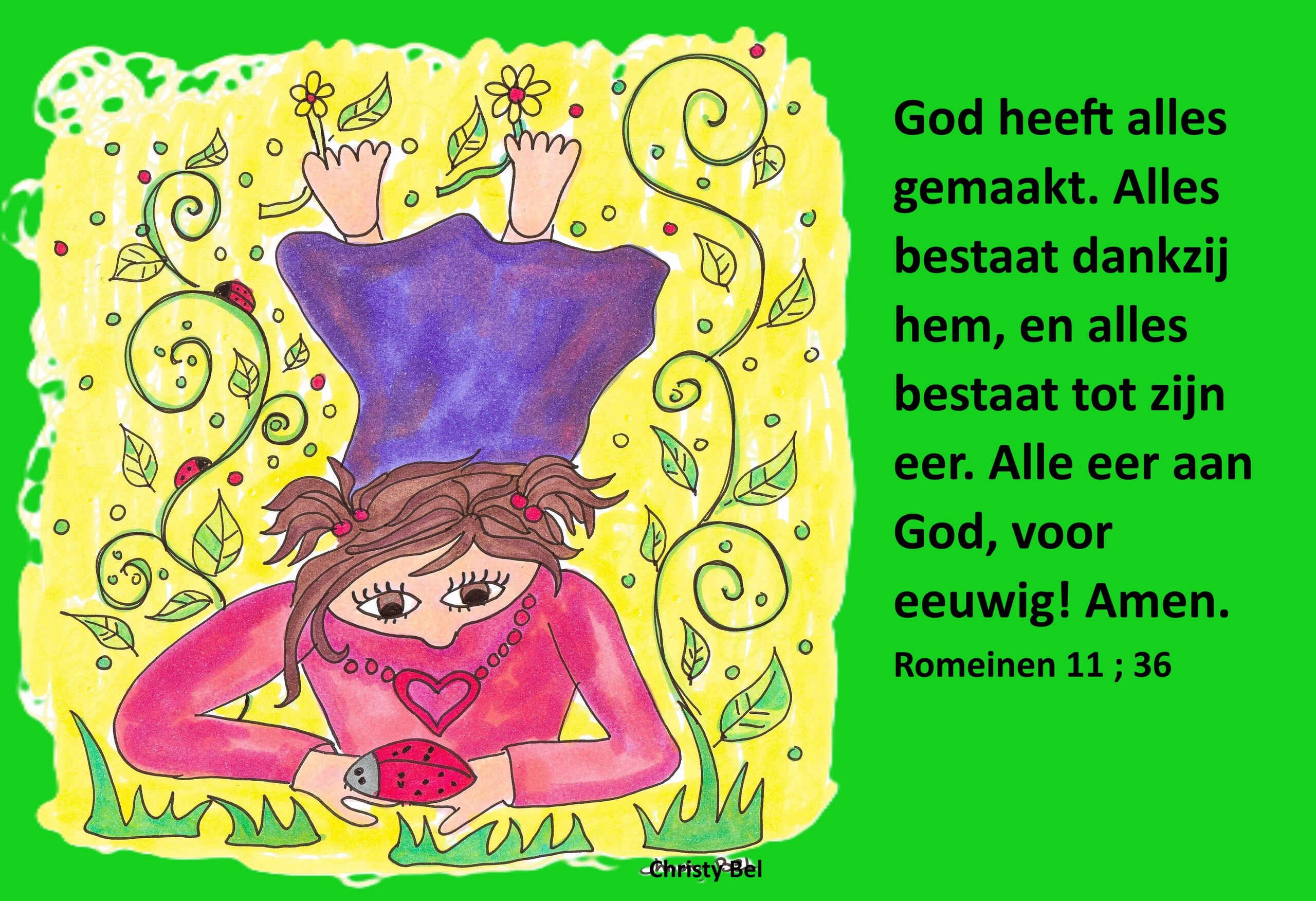 Hallo ik ben christy Bel Graag maak ik illustraties en kleurplaten met een Bijbeltekst. Mijn werk mag gebruikt worden om blij van te worden. ( niet commercieel ) christybel.illustraties@gmail.com