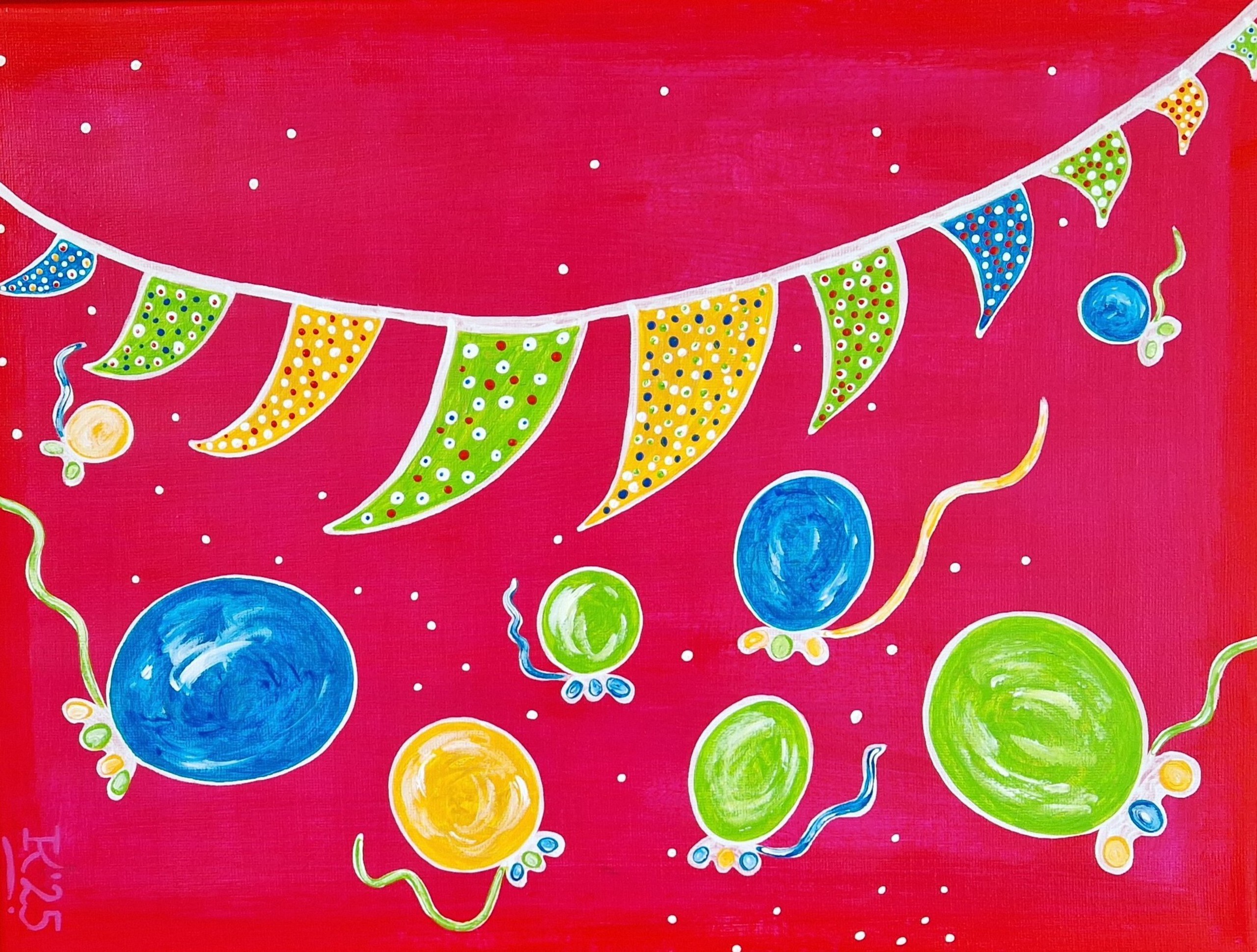Acrylverf op doek, 30 bij 40 cm, in houten baklijst. De lijst is gekleurd en de afbeelding loopt gedeeltelijk door op de lijst. Dit werk is tot en met 17 juli 2025 te zien en te koop in de Leidse Stadtimmerwerf, prijs zie aldaar. Woensdag tot en met zondag van 11.00 tot 16.00 uur, Kort Galgewater 21 Leiden; van harte welkom!