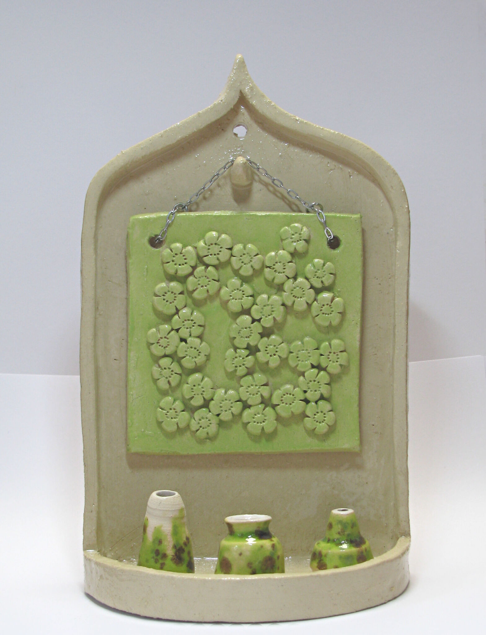 Lentegroen Groen Bloemen Keramiek Draaiwerk Altaar Vaasjes Handvormen Altaartje