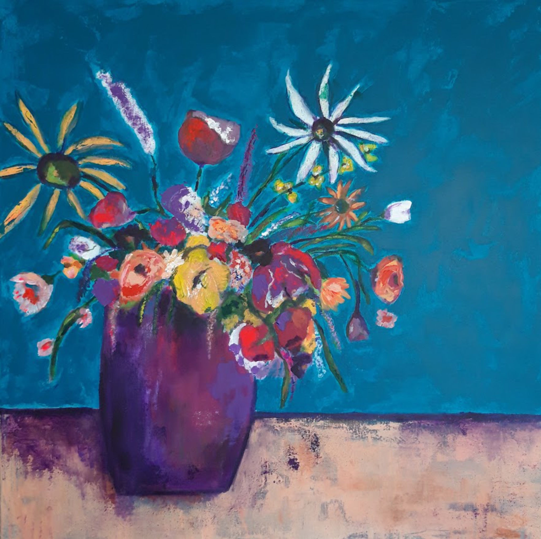 Modern bloemen schilderij, mooi op een muur in pastelkleur. Wordt geleverd in lichthouten baklijst. Fotos op aanvraag. Exclusief verzendkosten. Proef hangen in overleg. Ophalen kan in Borne. Kijk op instagram: stephanievanbenthem