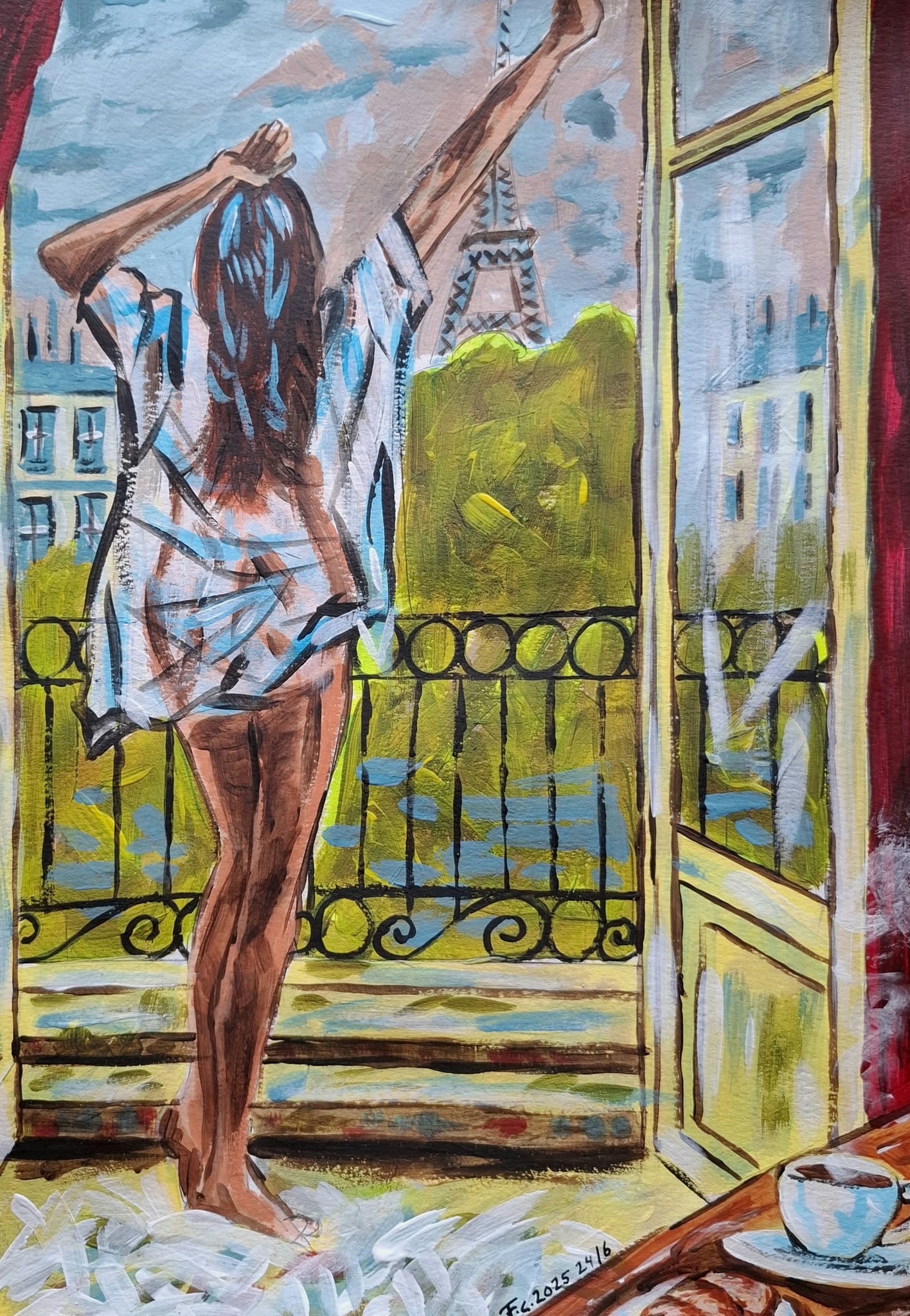 Vrouw Balkon Erotiek Parijs Eiffeltoren Ontbijt
