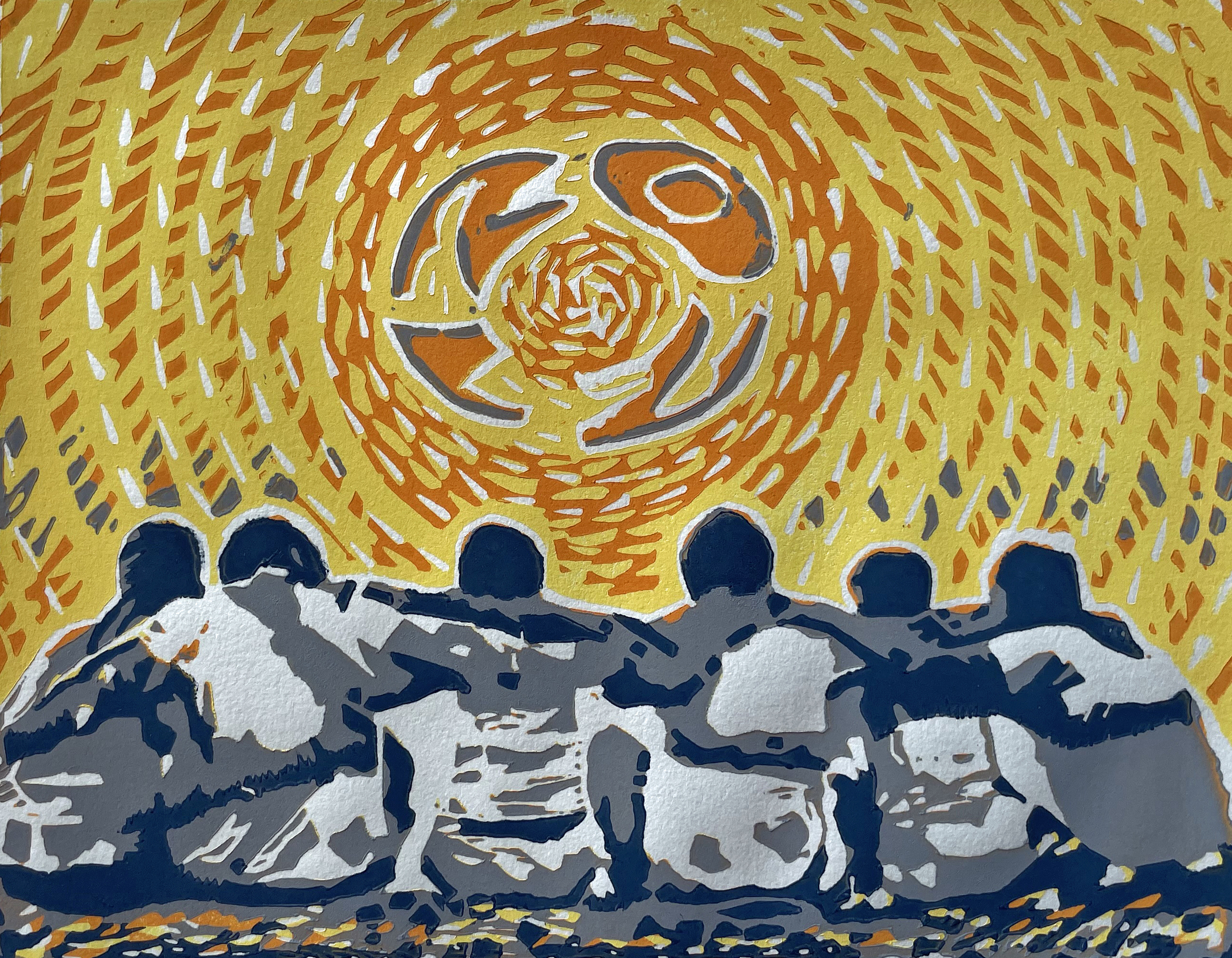 Ik ben linokunstenaar in Gorssel. Mensen in interactie inspireren me. Ik kies beelden van straat, theater en film. Foto’s helpen me om scherp te kijken, tot keuzes te komen.