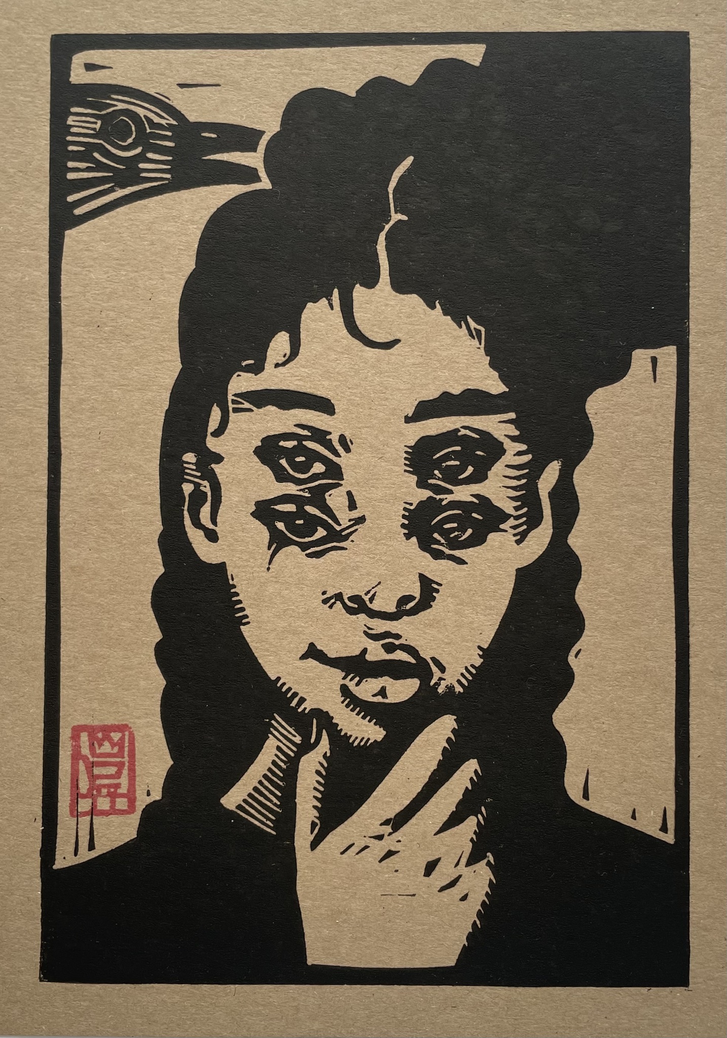 Rex Rexwinkel Printmaker Linocut Reliefprint Printisnotdead Grafiek Kaart Female Bird Love Knowledge Lintocutprint Printmaking Kraft Papier