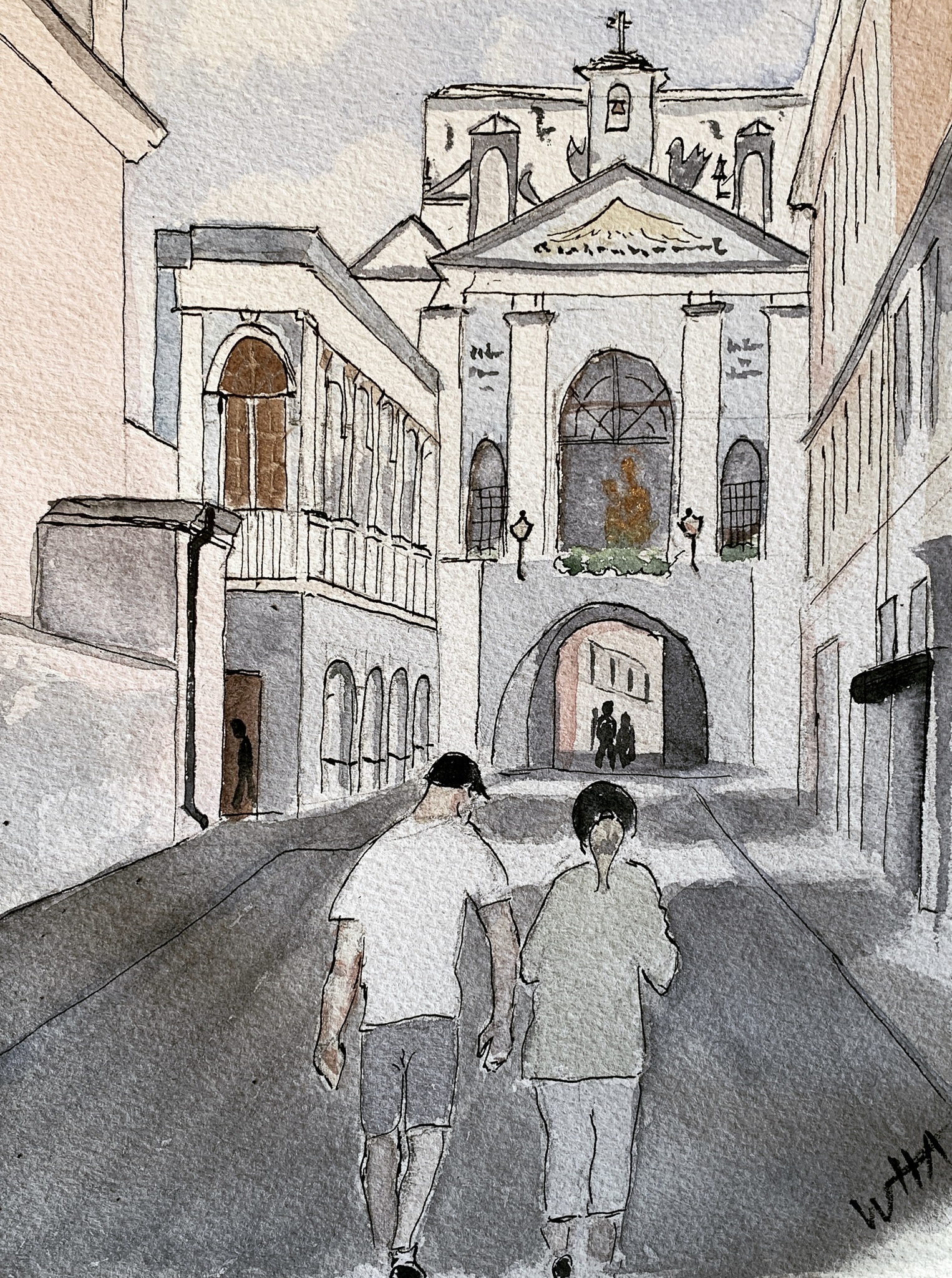 Aquarel Tekening Vakantie Inkt Watercolor Stadsgezicht Litouwen Indianink Vilnius Gateofdawn