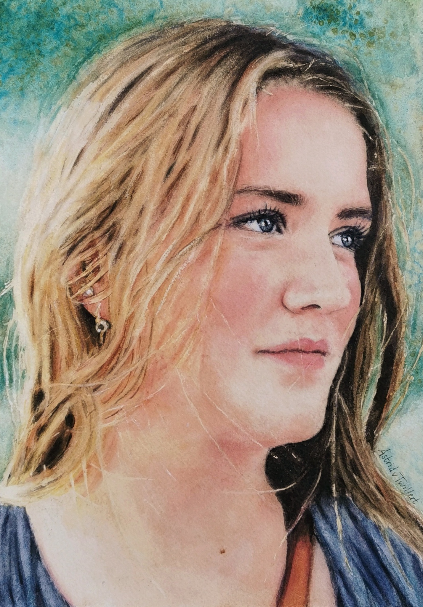 Meisje Vrouw Portret Gezicht Aquarel Realistisch Aquarelportret Award Prijswinnaar