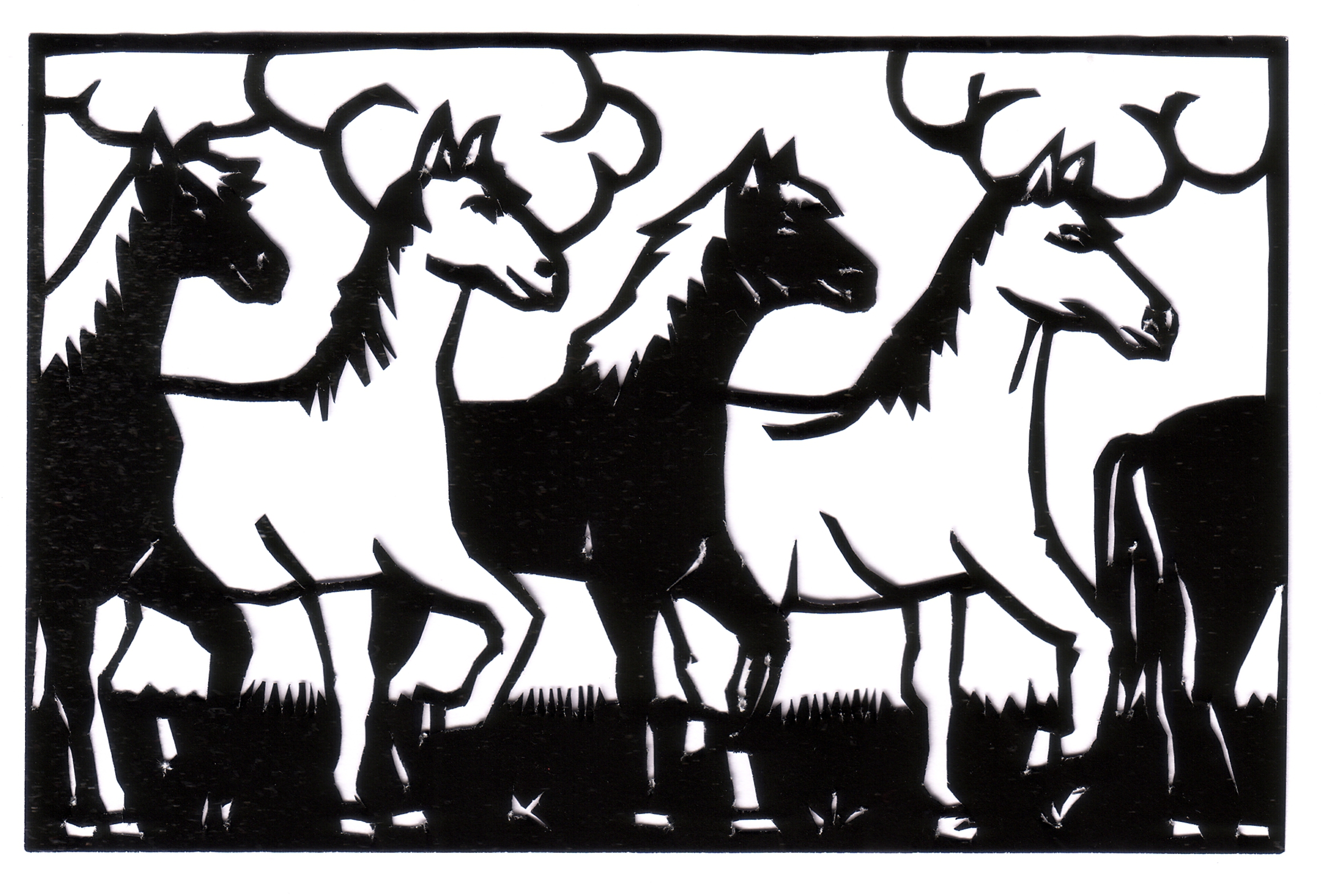 Paard Ros Horse Cheval Pferd Galop Scherenschnitt Papercutout Knipsel Knipkunst Knipwerk Papierknipkunst Decoupage