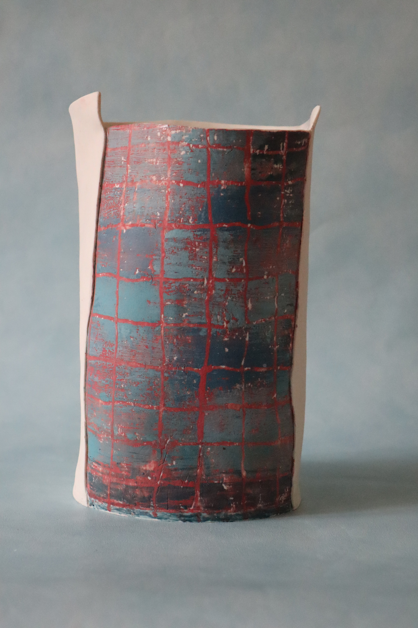 Vaas met monoprint Schotse ruit