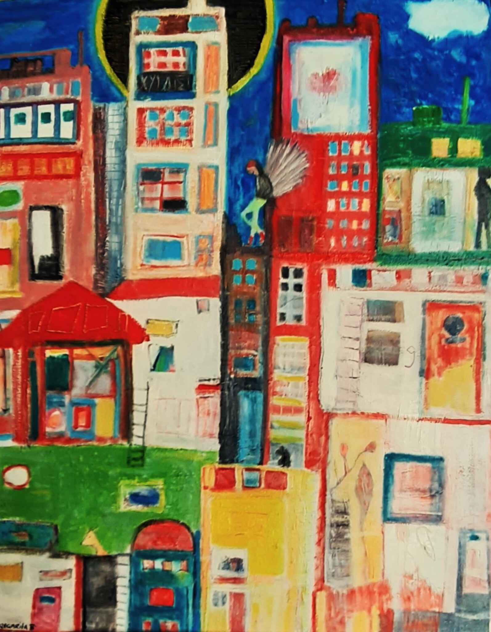 Als abstract expressionist flirt ik met het figuratieve maar liefst duld ik van mijzelf geen enkele terughoudendheid. Ik werk als een verhalenverteller en inspiratie haal ik uit het leven zelf.