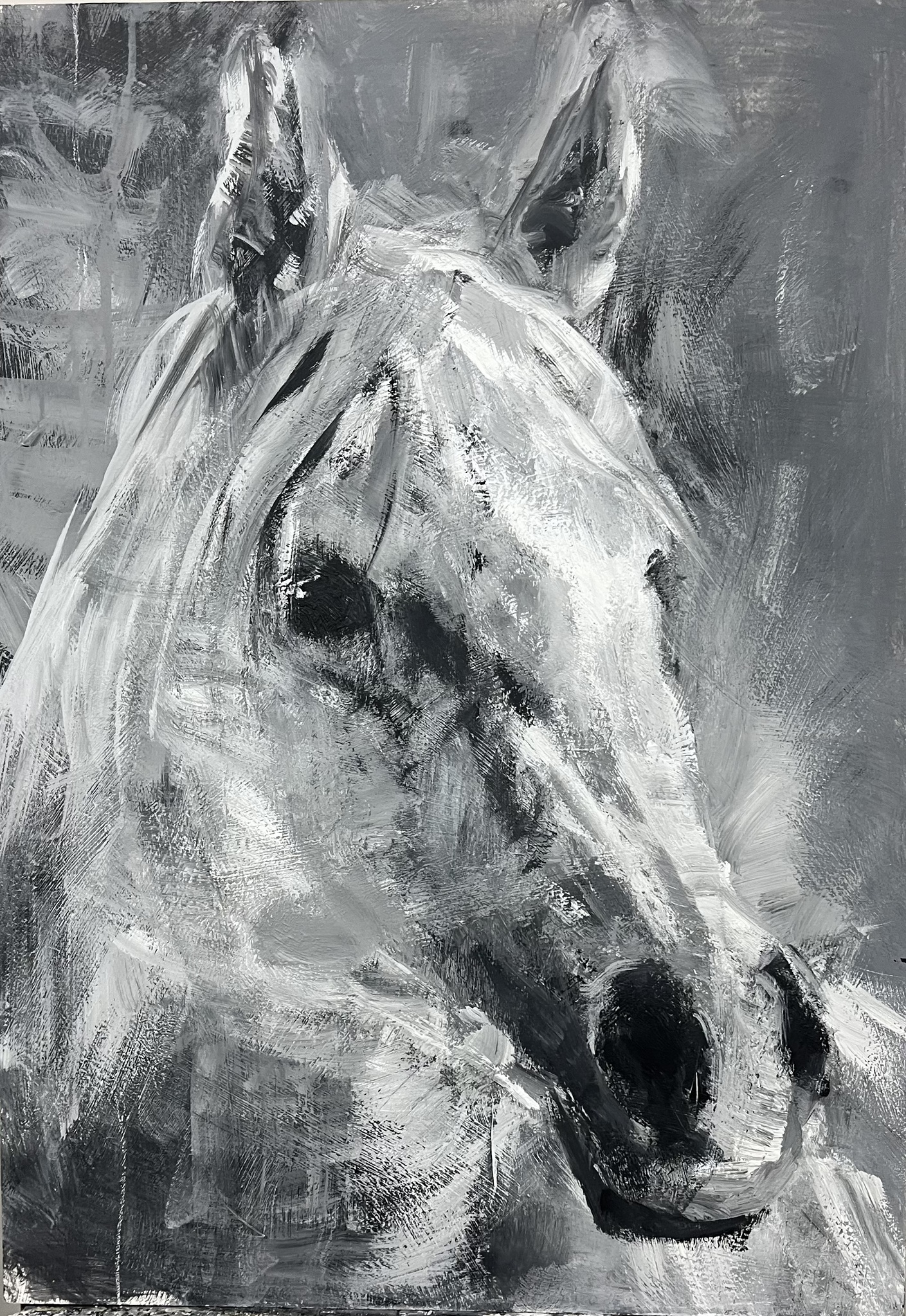 Zwannie schildert. Het gaat om de suggestie met verf. Verf dat als materiaal zichtbaar mag blijven. Haar stijl is impressionistisch en het werk heeft een grote zeggingskracht.