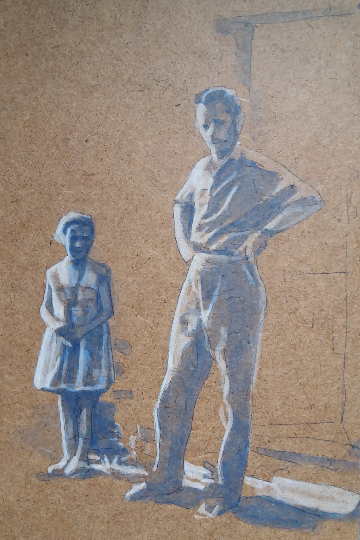 Kleine charmante werken op paneeltjes vaak A4-formaat. Portretten, bloemen, stillevens van fruit, glaasjes, doorkijken in het bos, een zicht met wachtende figuren….