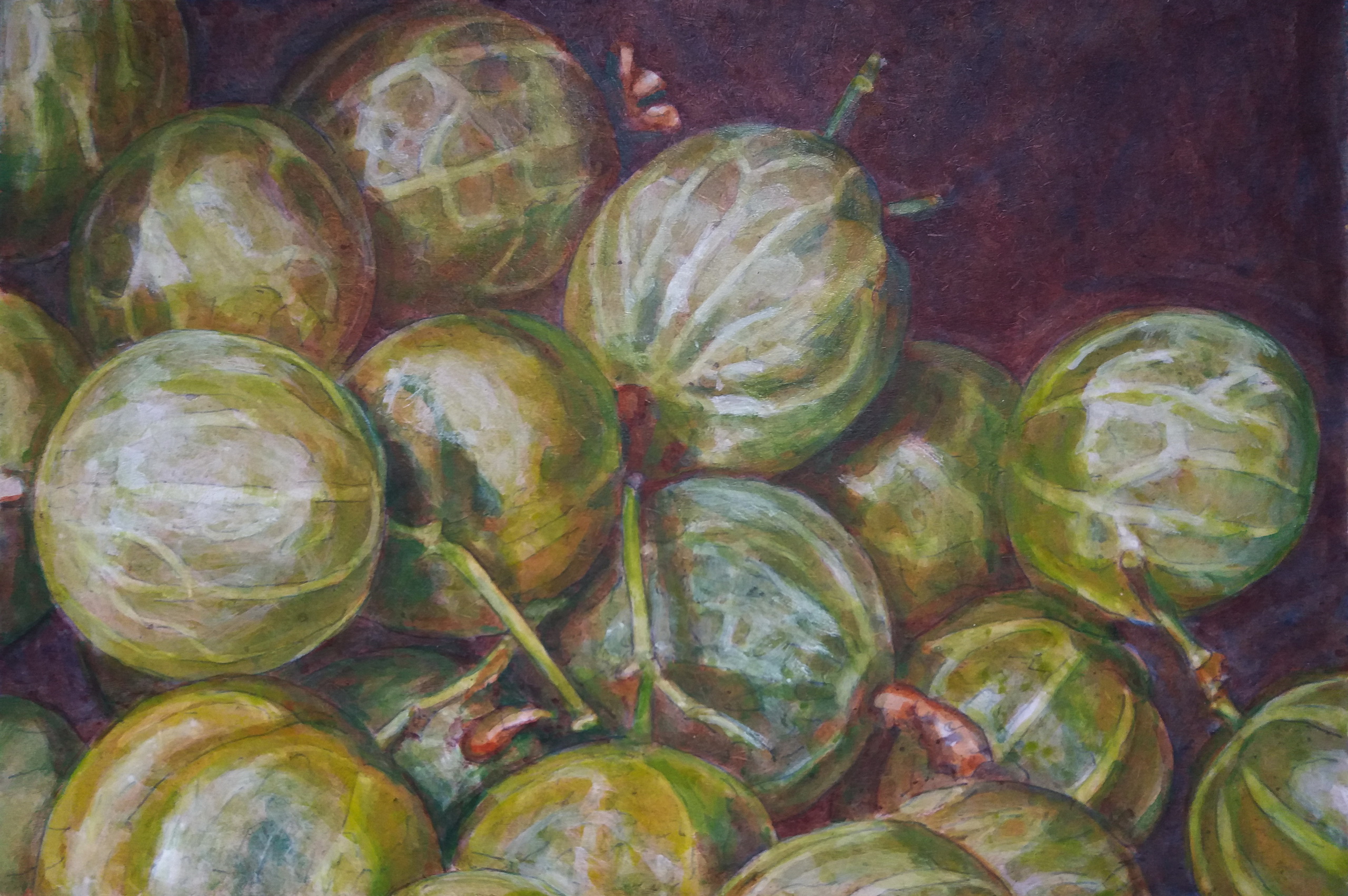 Kleine charmante werken op paneeltjes vaak A4-formaat. Portretten, bloemen, stillevens van fruit, glaasjes, doorkijken in het bos, een zicht met wachtende figuren….