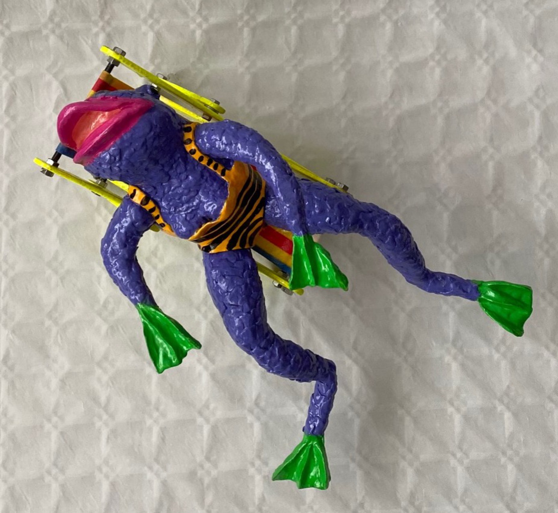 Pim van Pelt maakt vrolijke, kleurrijke en betaalbare kunst. Mensen een glimlach ontlokken is het doel. Het materiaal: keramiplast, acryl en afgewerkt met meerdere lagen epoxie.