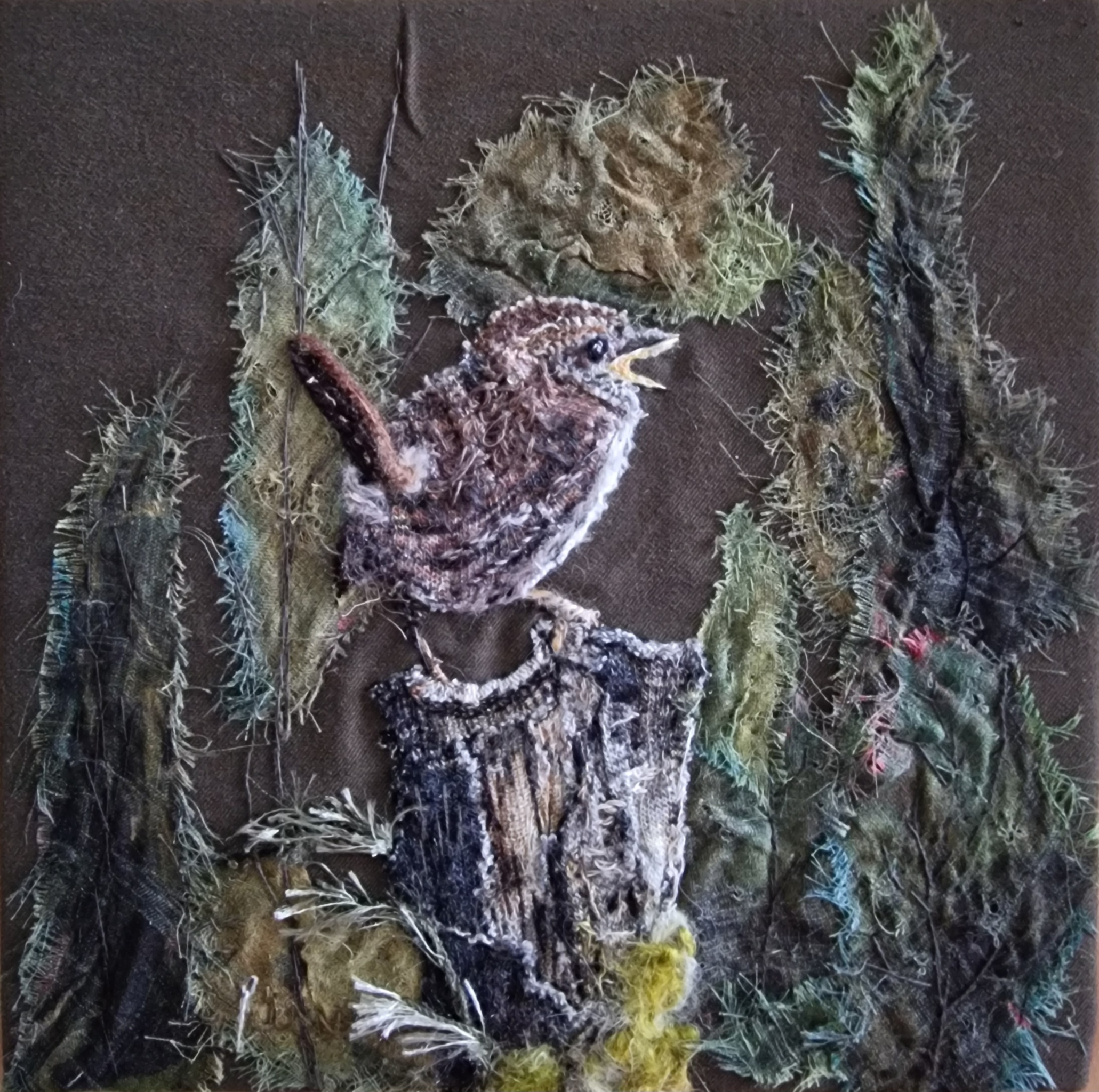 Natuur Bos Textiel Vogels Boomstam Winterkoning Naaldkunst