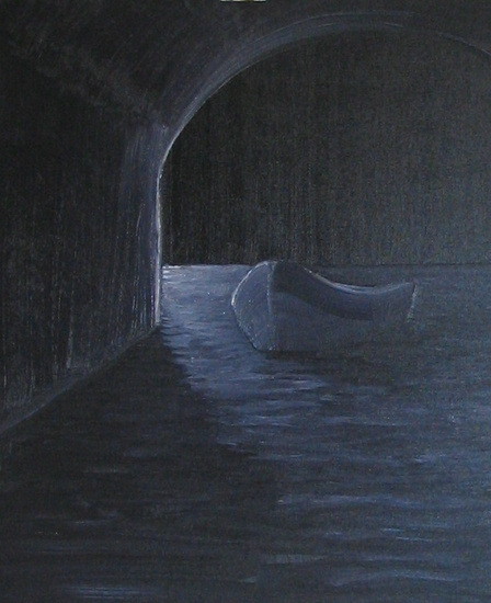Zwart begin, licht om de hoek onder de brug