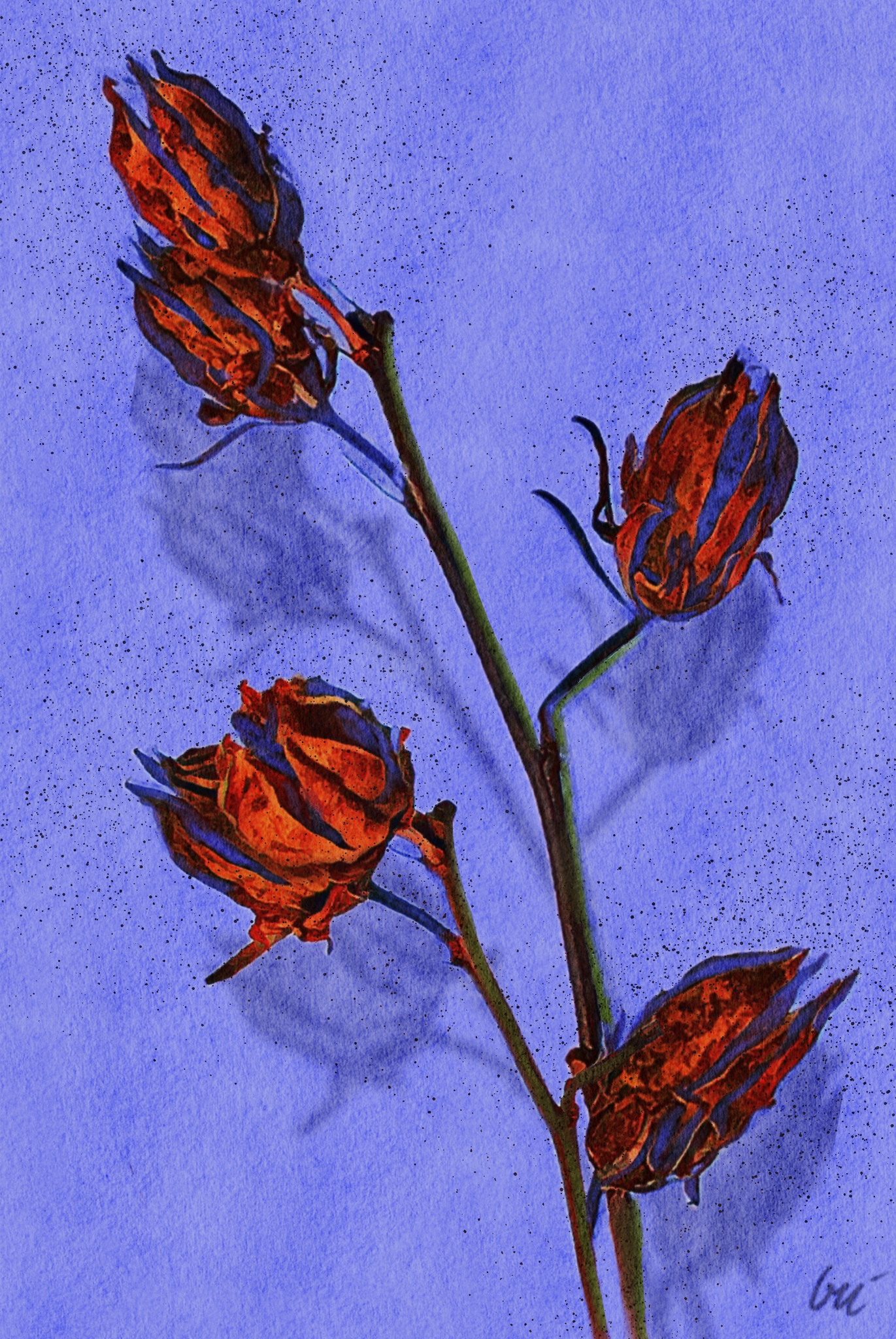 Hibiscus zaaddozen. Mix van fotografie en digitaal schilderen.