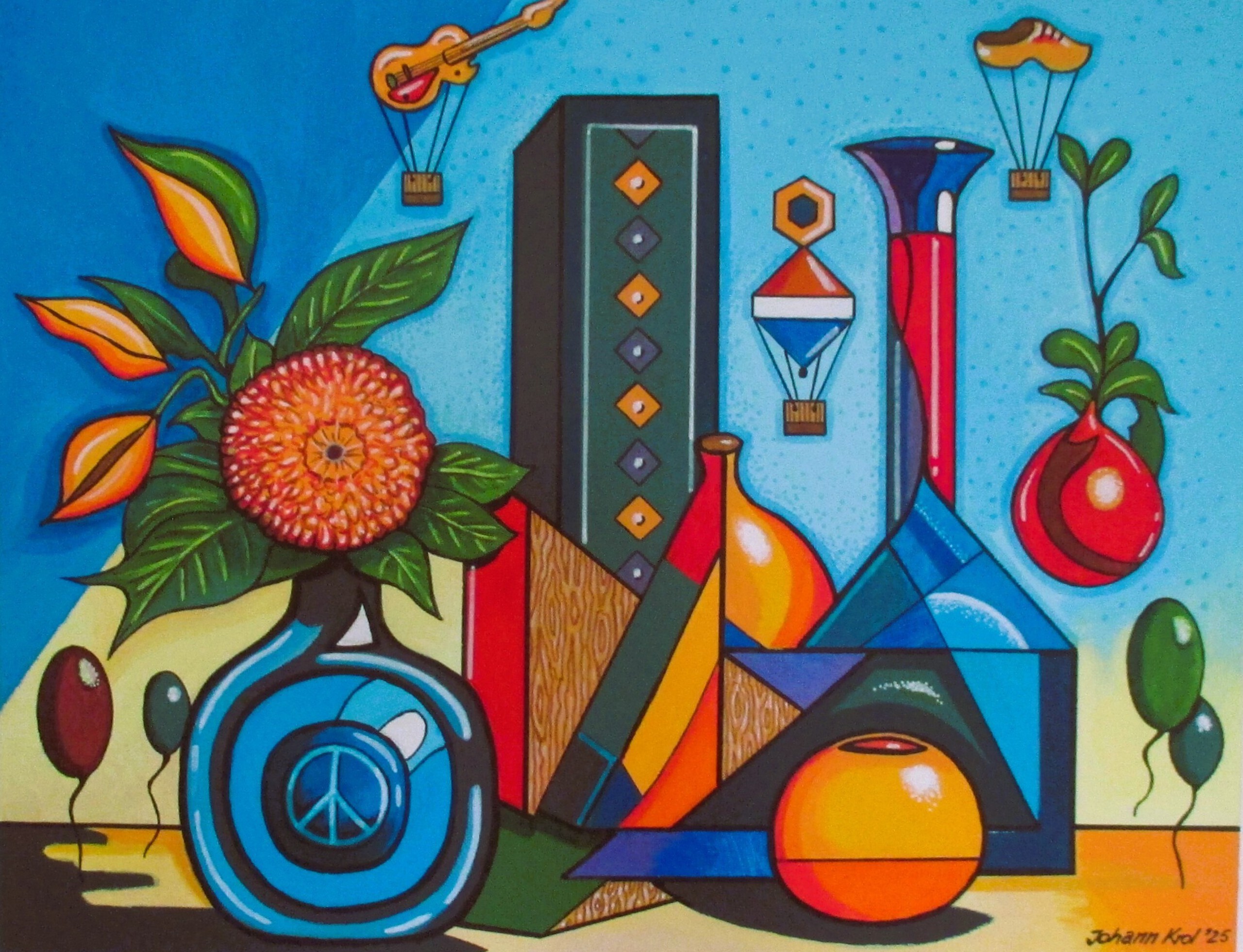 Mijn naam is Johann Krol, al vanaf mijn jeugd is tekenen en schilderen mijn grote passie. Werkte ik in mijn beginjaren voornamelijk met pen en inkt, kleurpotloden, stiften, en grafische technieken. Sinds een jaar of tien ook met olieverf, acrylverf, en pastel. Zowel realistisch als ook figuratief abstract. Waarin ik vaak speel met geometrische lijnen en bonte kleuren. Mijn onderwerpen bestaan dan ook uit alledaagse dingen, dieren, en mensen. Ook hou ik me bezig met het maken van wandschilderijen, sculpturen, en het ontwerpen van boekomslagen.