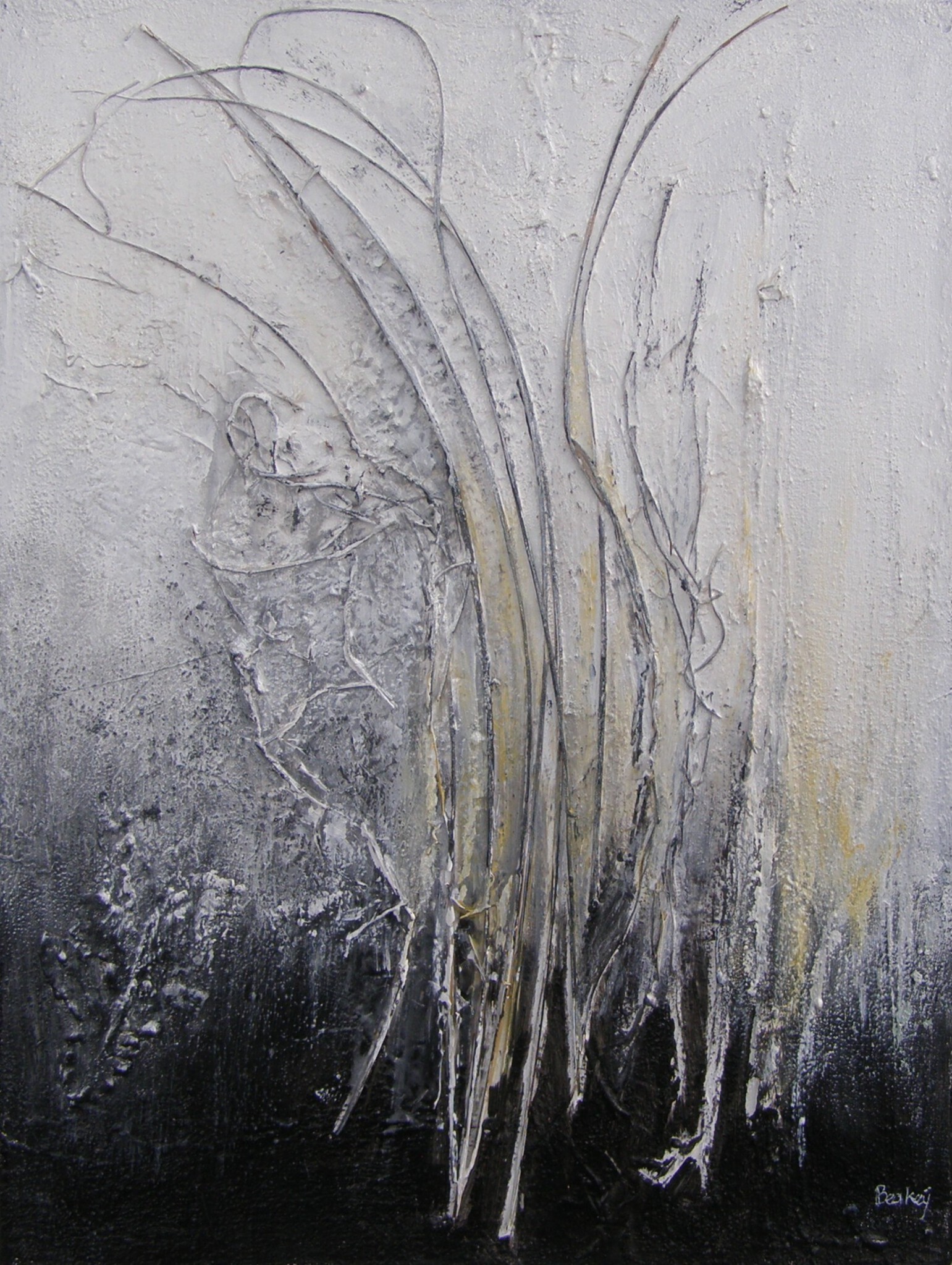 Haar schilderijen in gemengde techniek zijn geinspireerd door haar reizen in binnen-en buitenland. Schetsen en aantekeningen zijn het vertrekpunt, maar worden tot hun essentie in vorm en kleur teruggebracht.