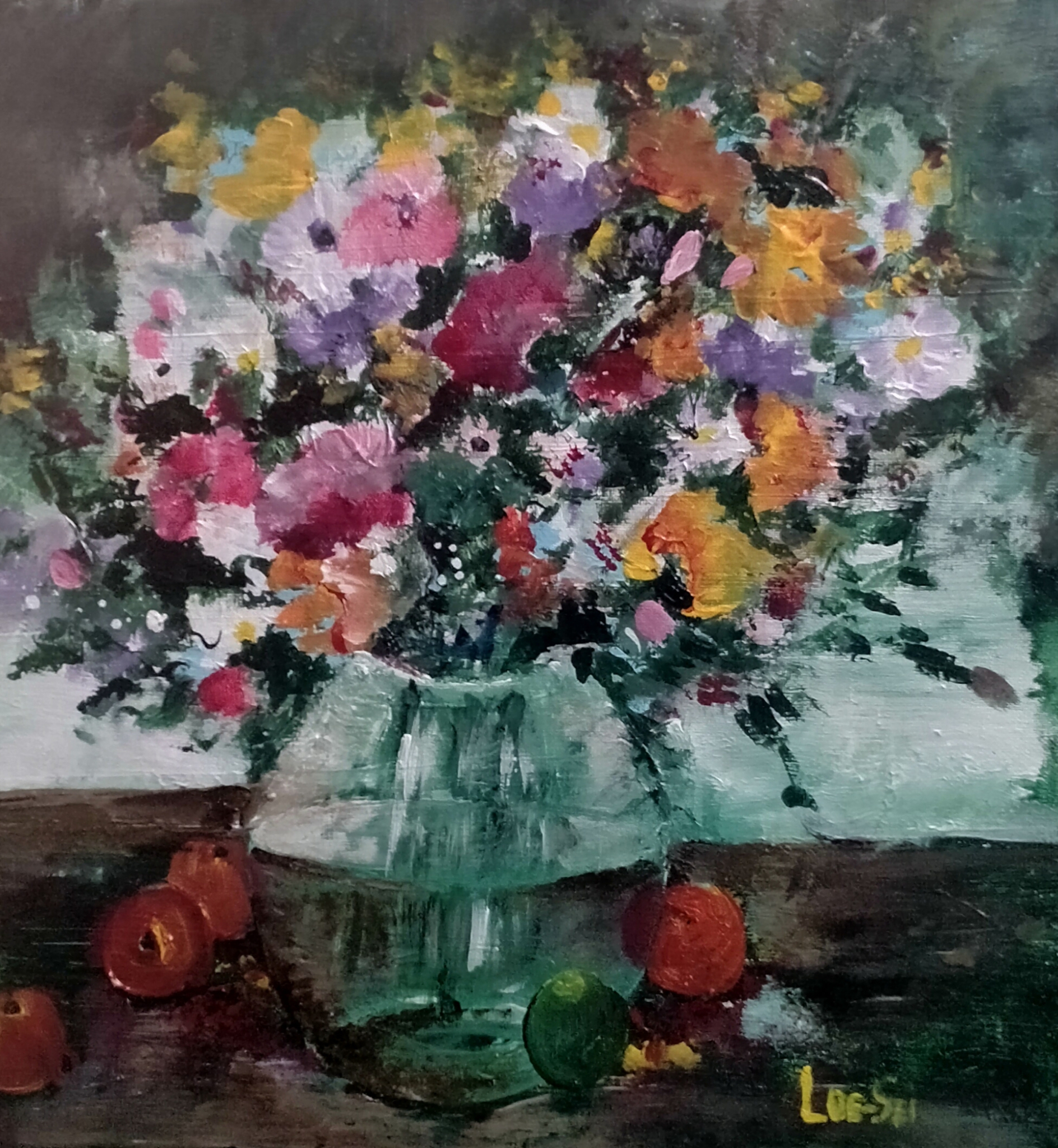 Loe-Sei schildert op grote doeken en heeft een kleurrijke, losse stijl. Het werk is impressionistisch te noemen. Zij is geboren in Eindhoven in 1947 . Grote doeken met vooral bloemen