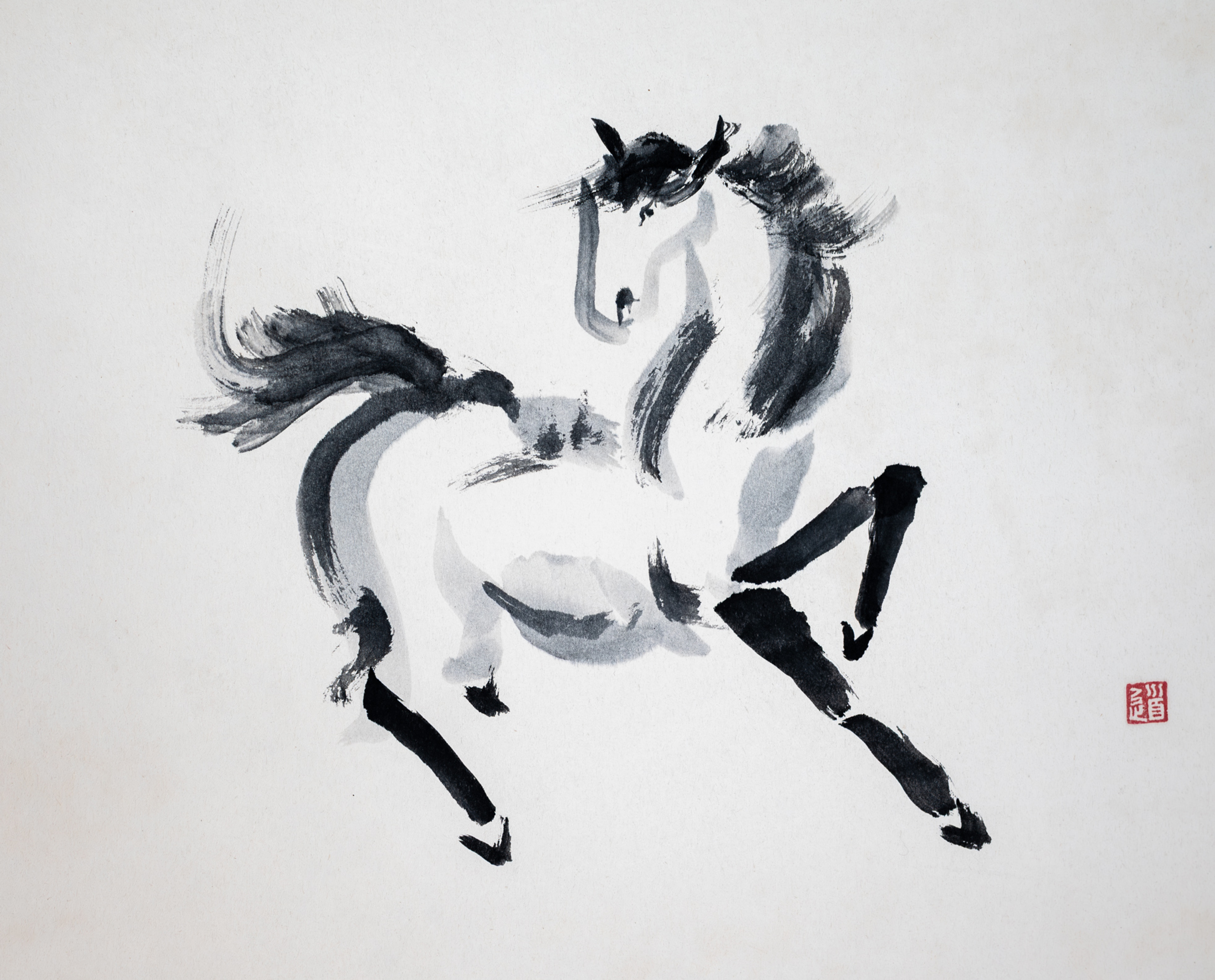 Paard Inkt Oosters Sumi-e Penseelschilderen