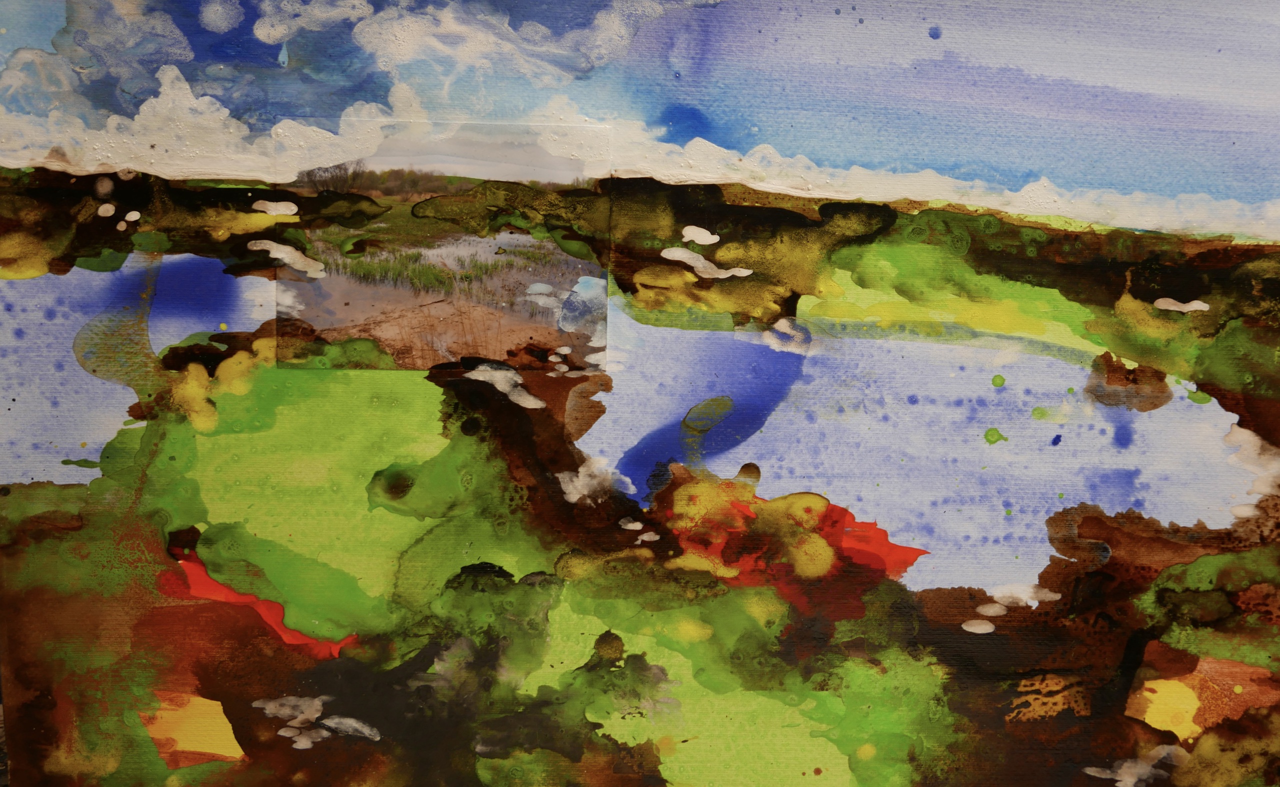 Thema in mijn werk is vaak de horizon. Het landschap dat voor je voeten ligt waar de horizon je uitnodigt om na te denken waar je vandaan komt en waar je heen gaat.