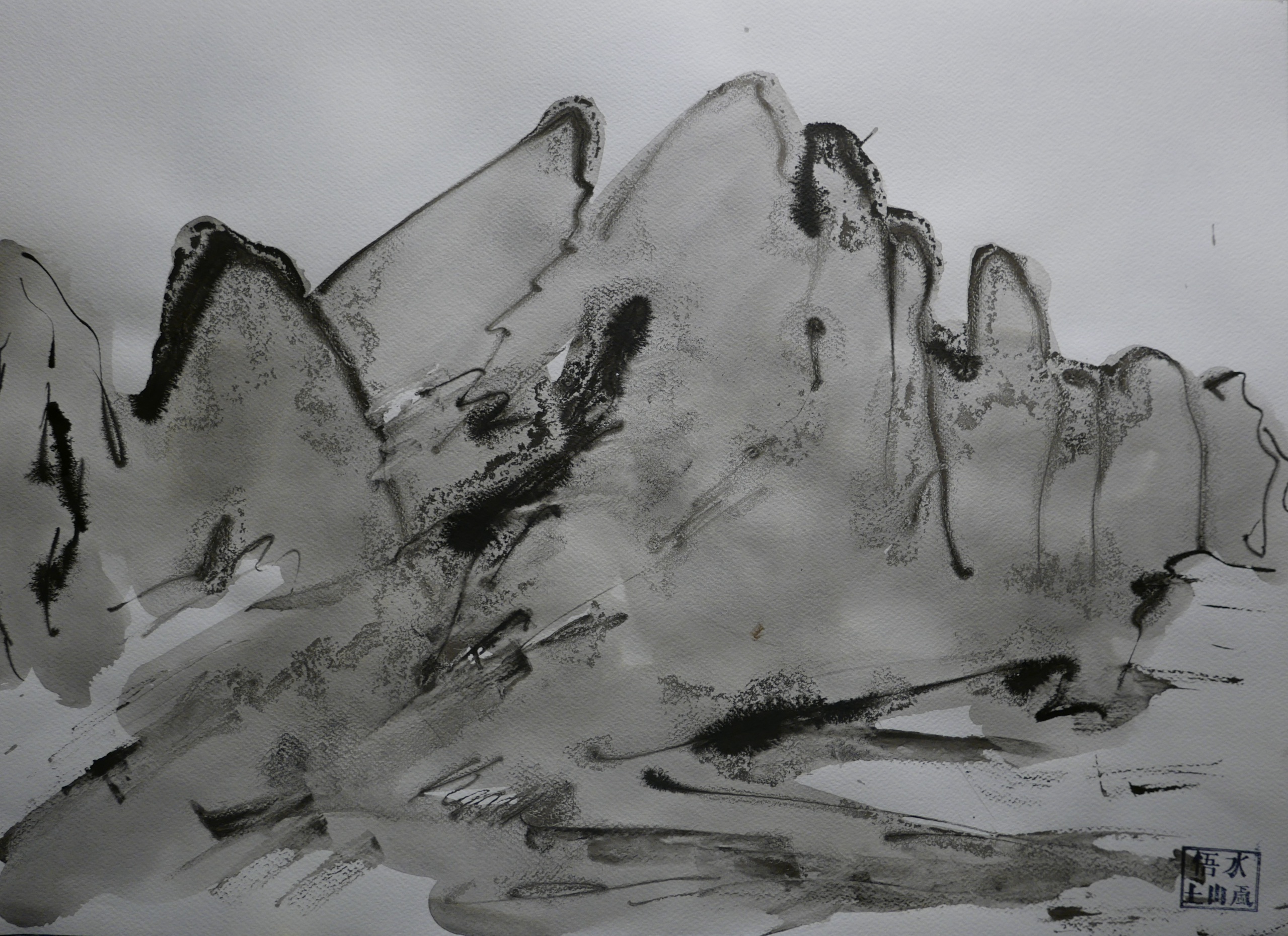 pigment, inkt, sumi-e op papier - geïnspireerd door de Japanse landschapsschilderkunst