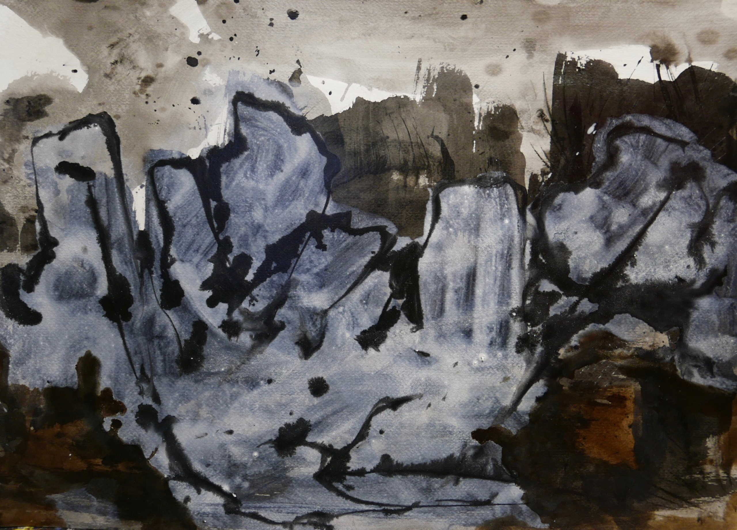 pigment, inkt, sumi-e op papier - geïnspireerd door de Japanse landschapsschilderkunst