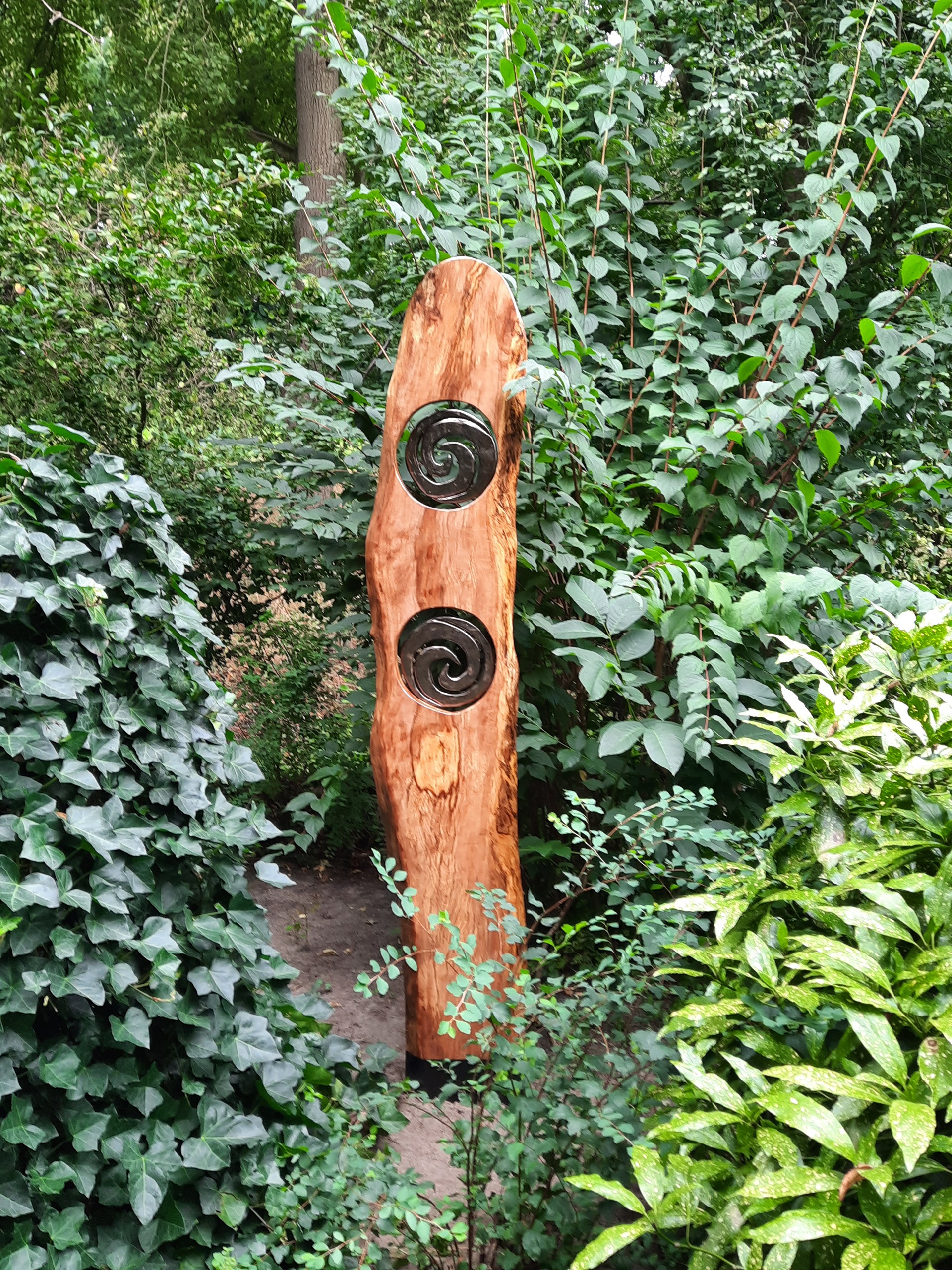 Door de totempalen in Canada geinspireerd geraakt ben ik sinds 2002 met hout gaan werken daarvoor in steen In onze Beeldentuin AJ & LW Bier komen de Sculpturen helemaal tot zijn recht samen met het keramiek van mijn vrouw Louise