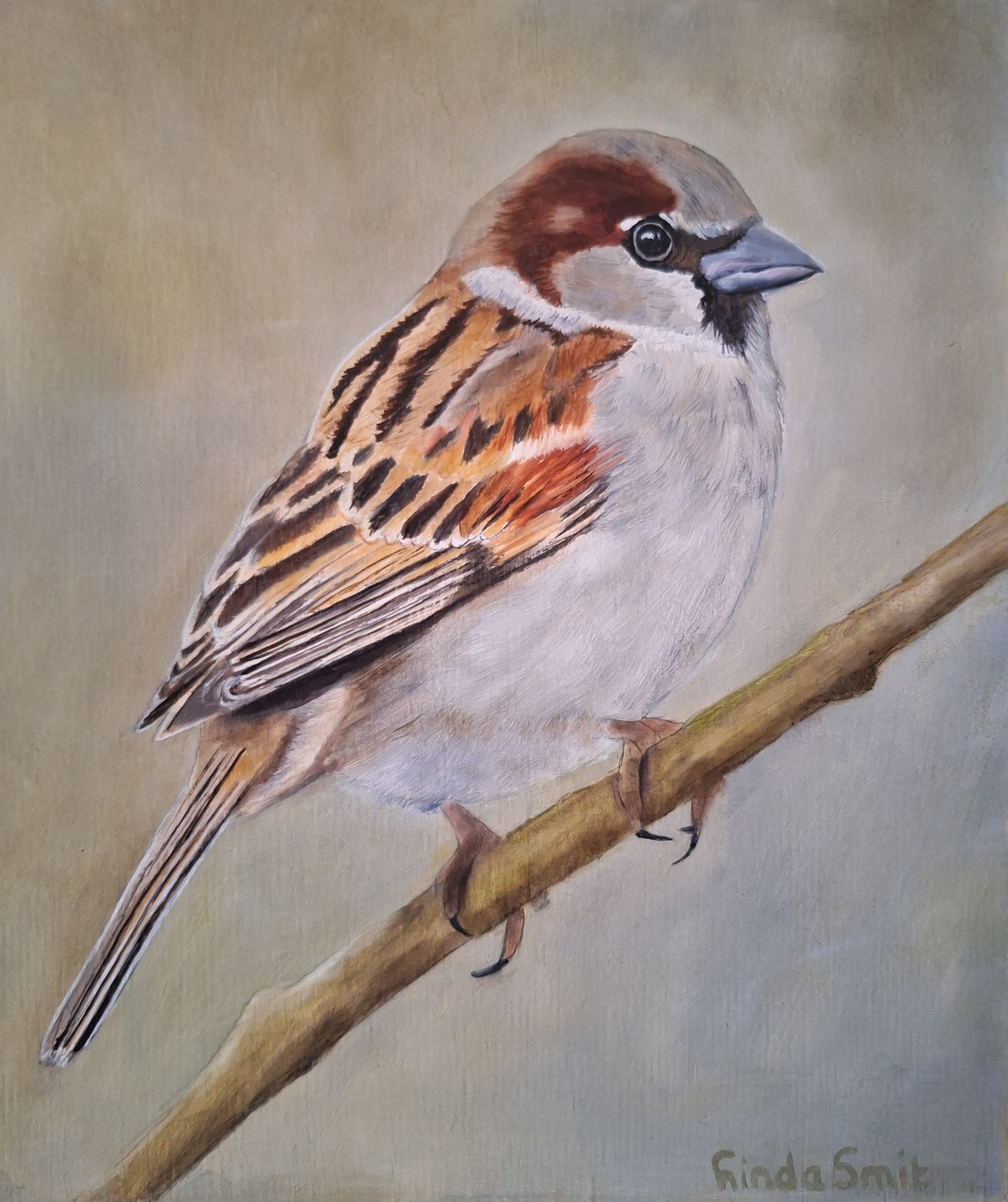 Ik ben Linda en schilder sinds 2011 realistische schilderijen van mensen en dieren. Mijn specialisatie zijn koeien en mussen. De meeste schilderijen maak ik met olieverf maar soms ook met acrylverf.