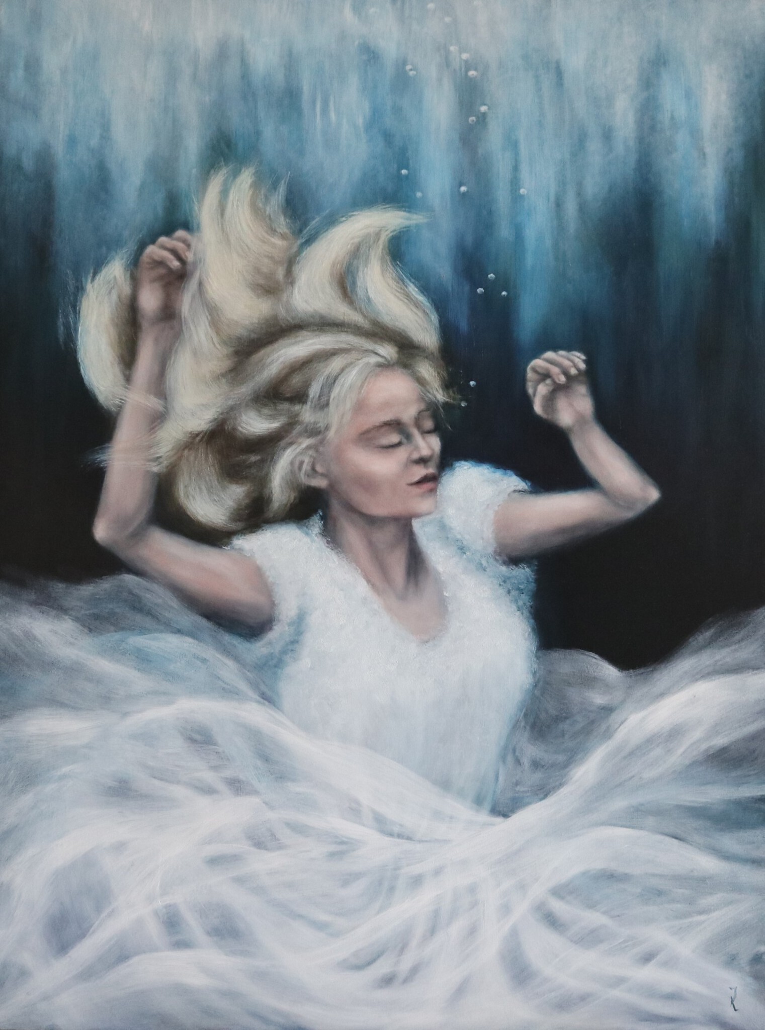 Schilderij Vrouw Water Olieverf Stilte Droom Ziel Symbolisch Diepte Stil Verdrinken Allegorisch