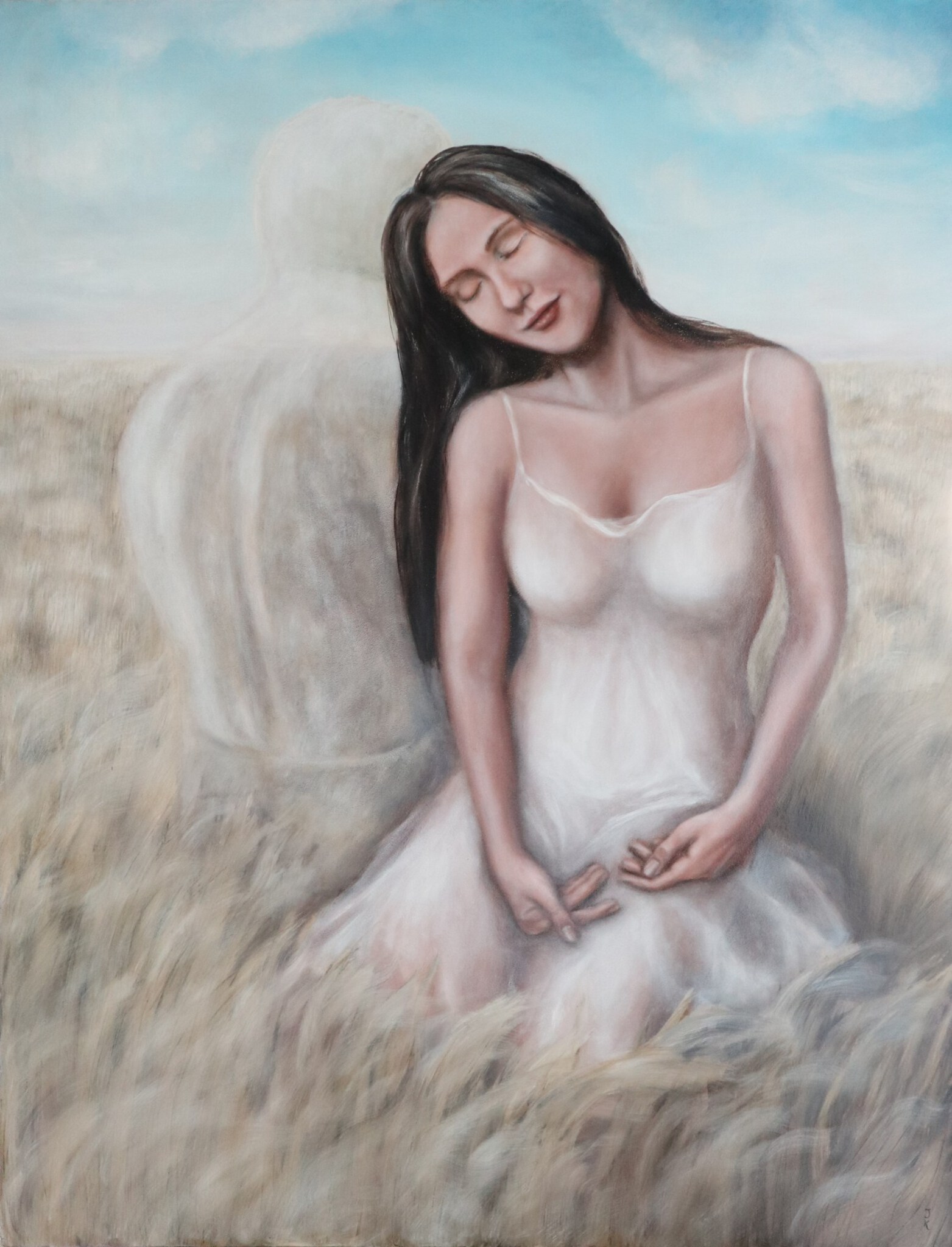 Schilderij Vrouw Man Liefde Geest Olieverf Dromen Dood Afscheid Verlangen Pijn Droom Oneindig Loslaten Intiem Veld Verbonden Vergankelijk Allegorie Allegorisch Symbolisch