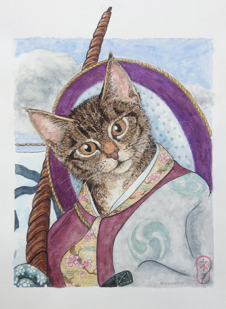 Arie de Jong (Alkmaar, 1961) verbindt in haar werk haar passie voor katten met haar interesse voor de Japanse cultuur en (krijgs)geschiedenis.