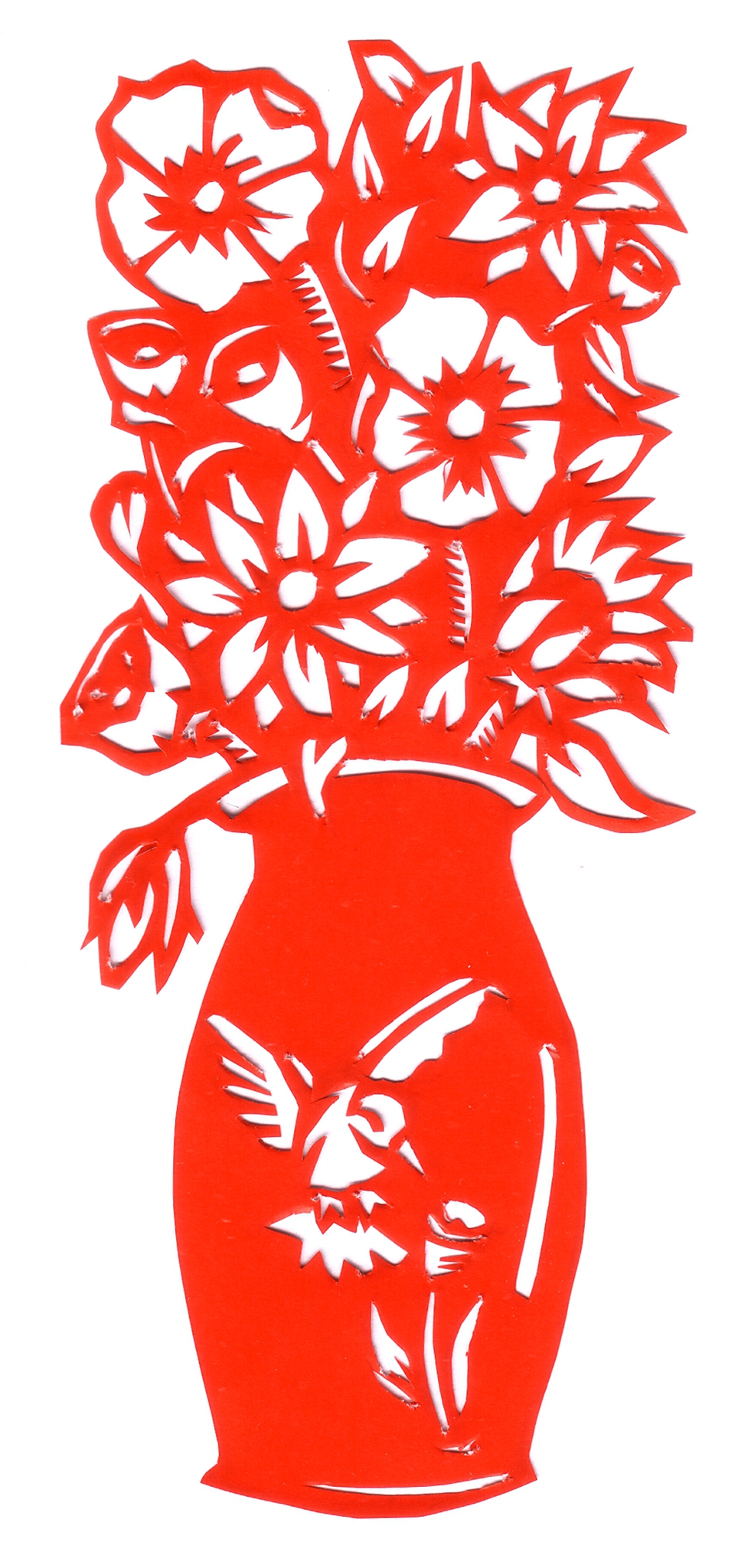 Vogel Vaas Boeket Knipkunst Papierknipkunst Papercutout Decoupage Scherenschnitt