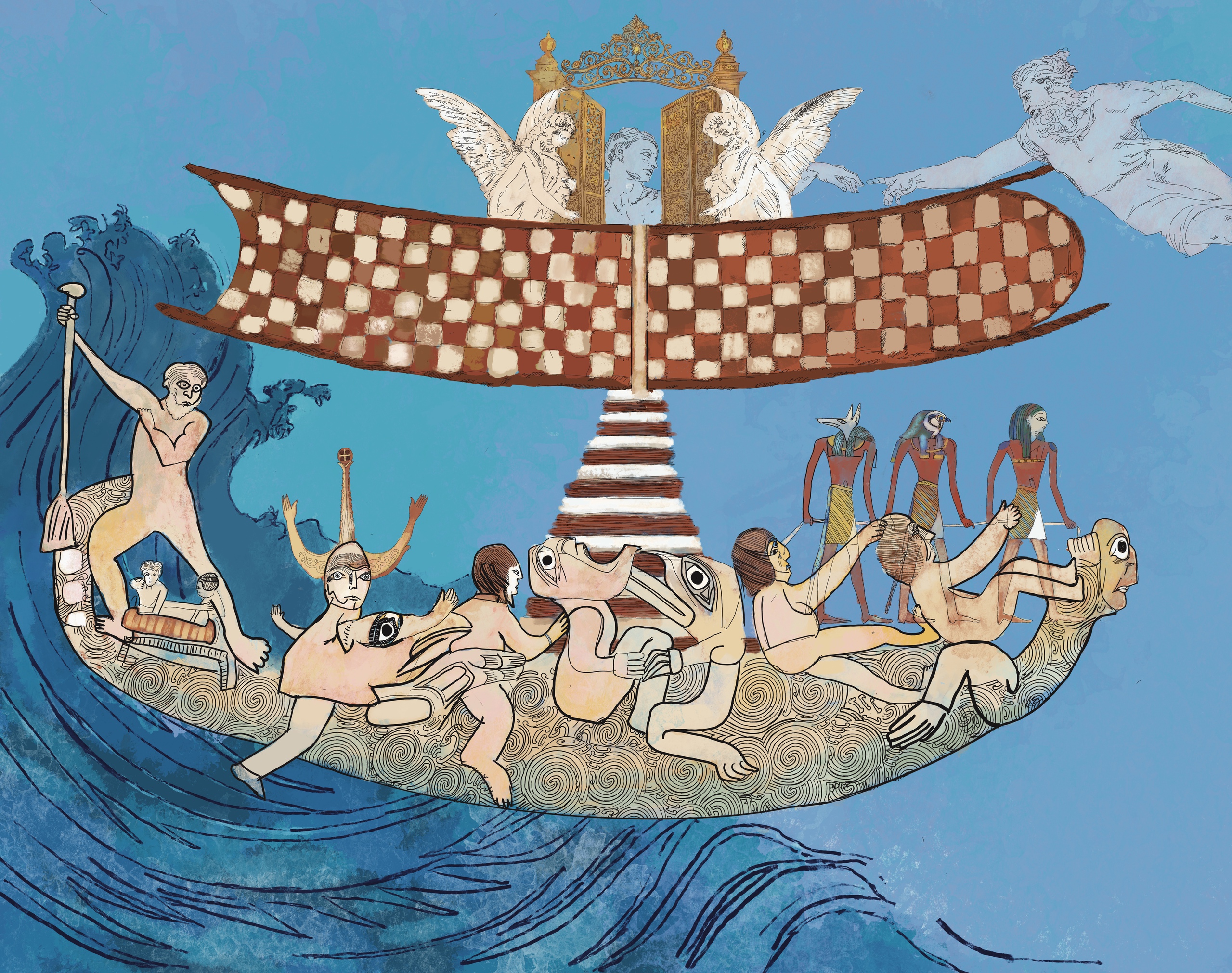 Mensen in alle tijden, culturen en religies hebben zich de vraag gesteld. Waar ga ik naar toe als ik dood ga. Is er een hiernamaals of het grote niets. Is het leven tijdelijk en daarna de eeuwigheid. Dit schip verbeeldt die laatste reis met elementen uit culturen van veel tijden en windstreken.