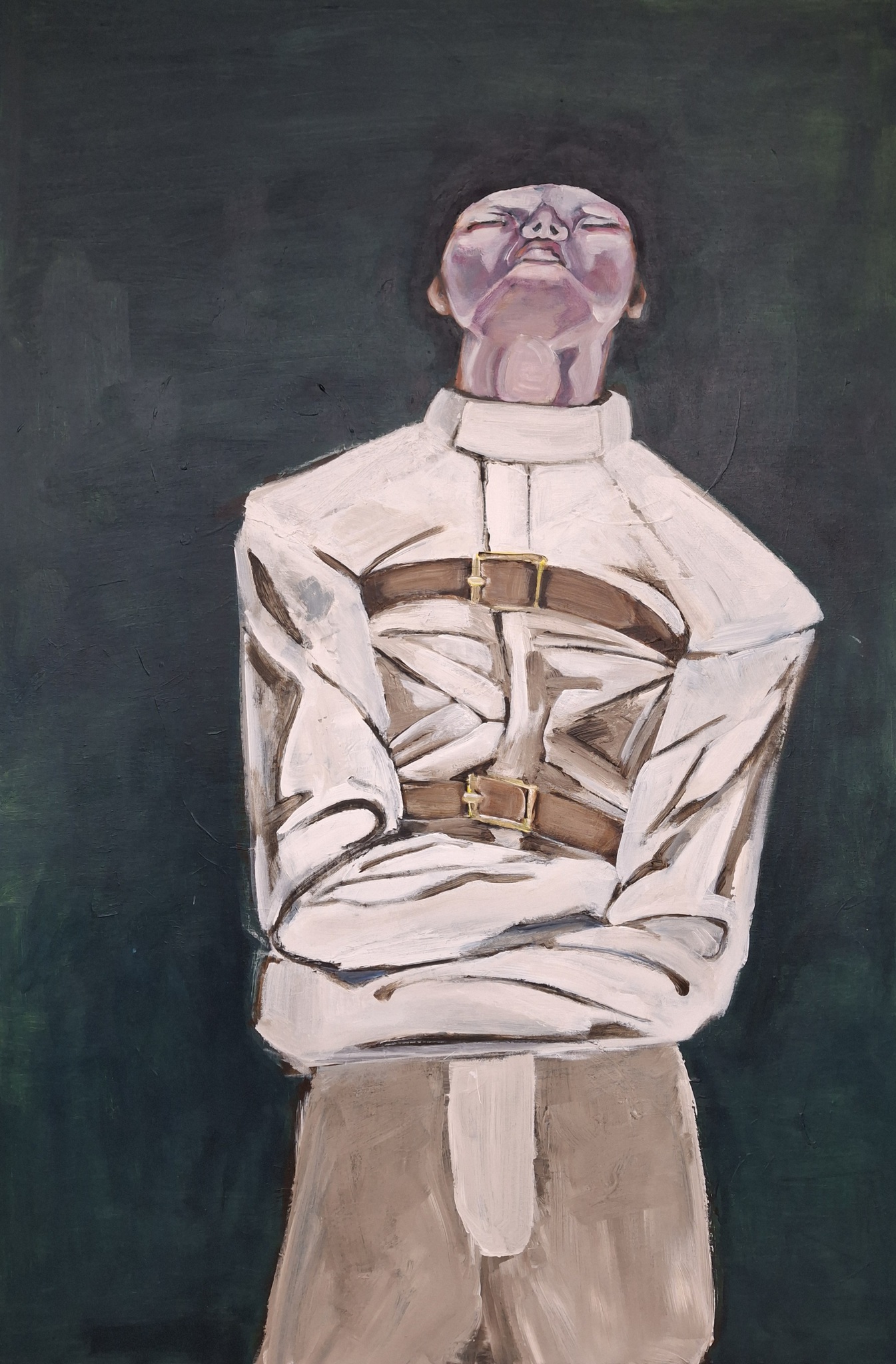 Kunst Schilderij Schilderkunst Acrylverf Mens Vrouw Dwangbuis Vast Vastgebonden Gebonden Uitweg Onderdrukking Stil Figuratief Figuratie Abstraheren