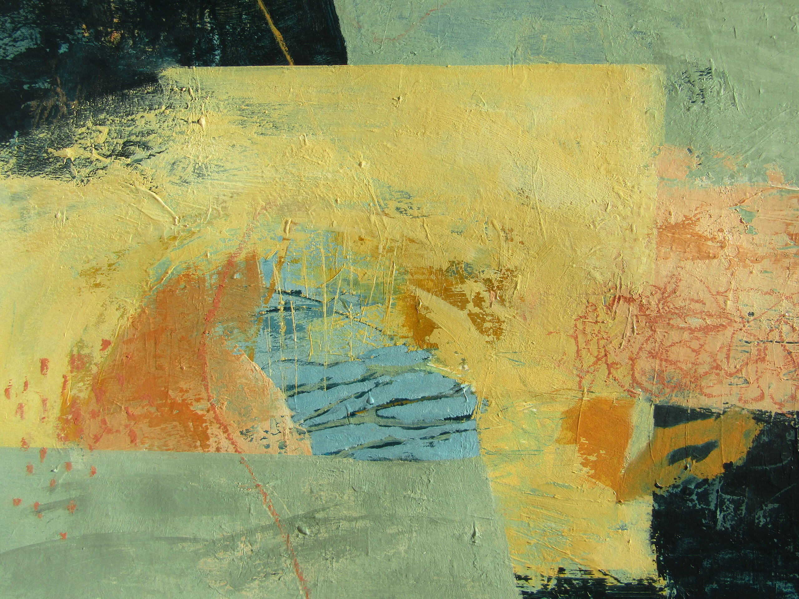 Poëtisch Lyrisch Abstractie Landschappelijk Kleurrijk Geel Blauw Zwart Expressief Interieurkunst